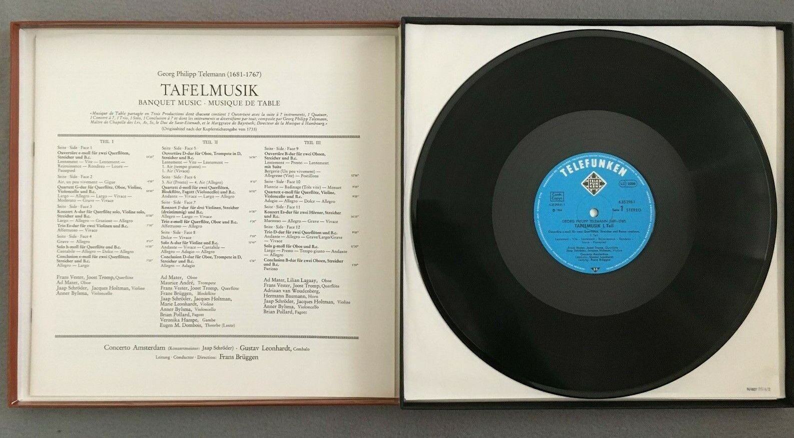 G285 Telemann Banquet Music Leonhardt Brüggen 6LP Telefunken 6.35298 FX Stereo