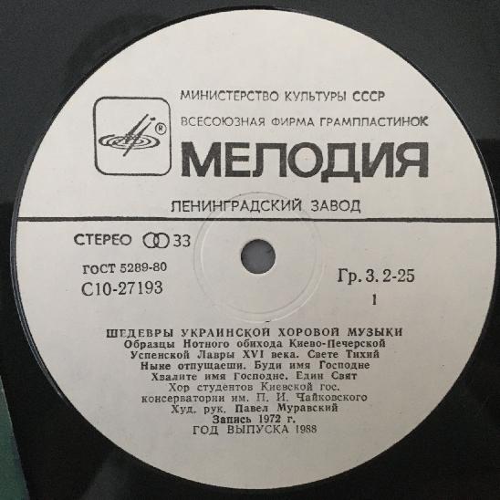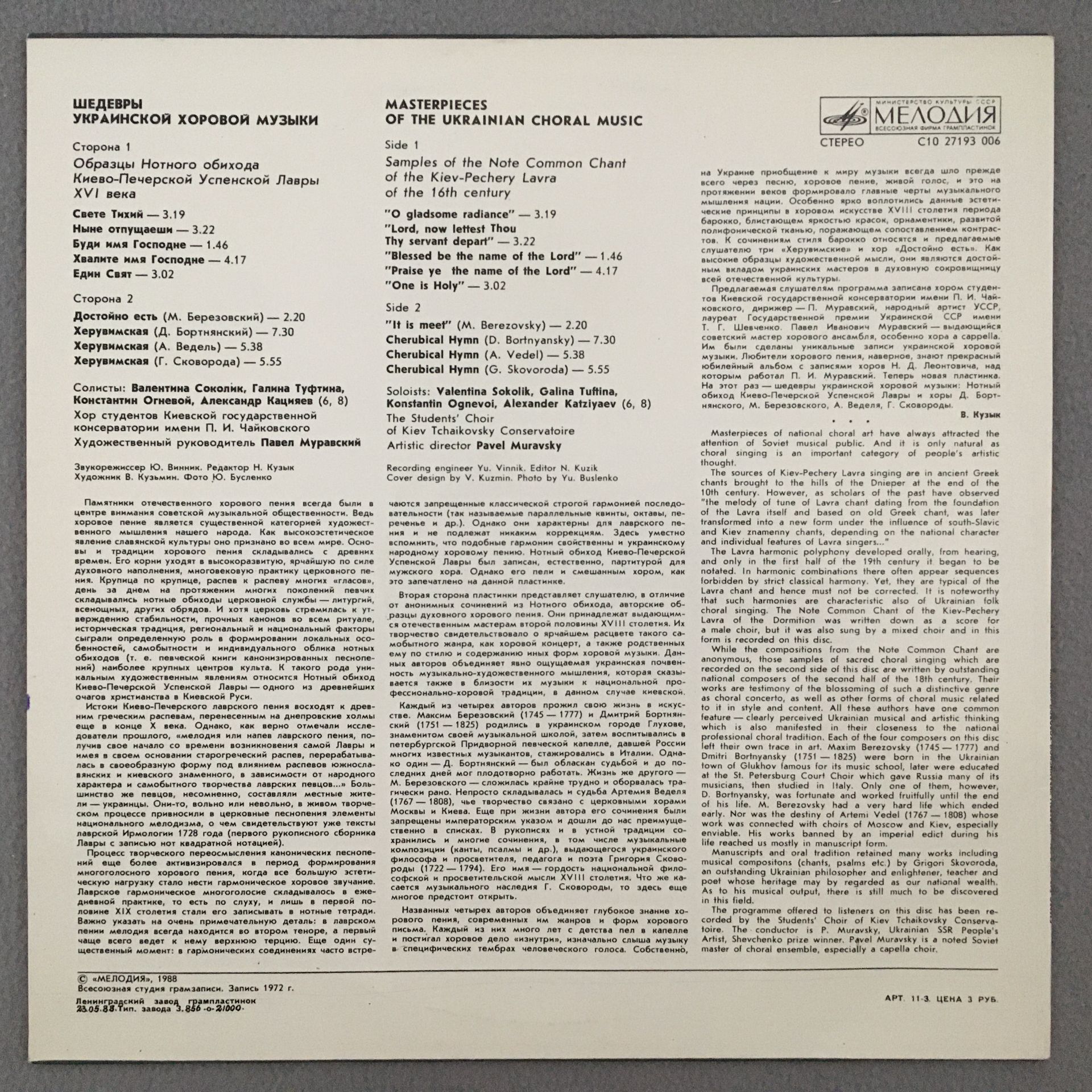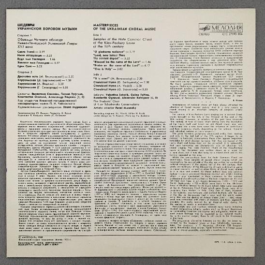 J569 Ukrainin Choral Music Masterpieces Muravsky Melodiya C10 27193 006 Stereo