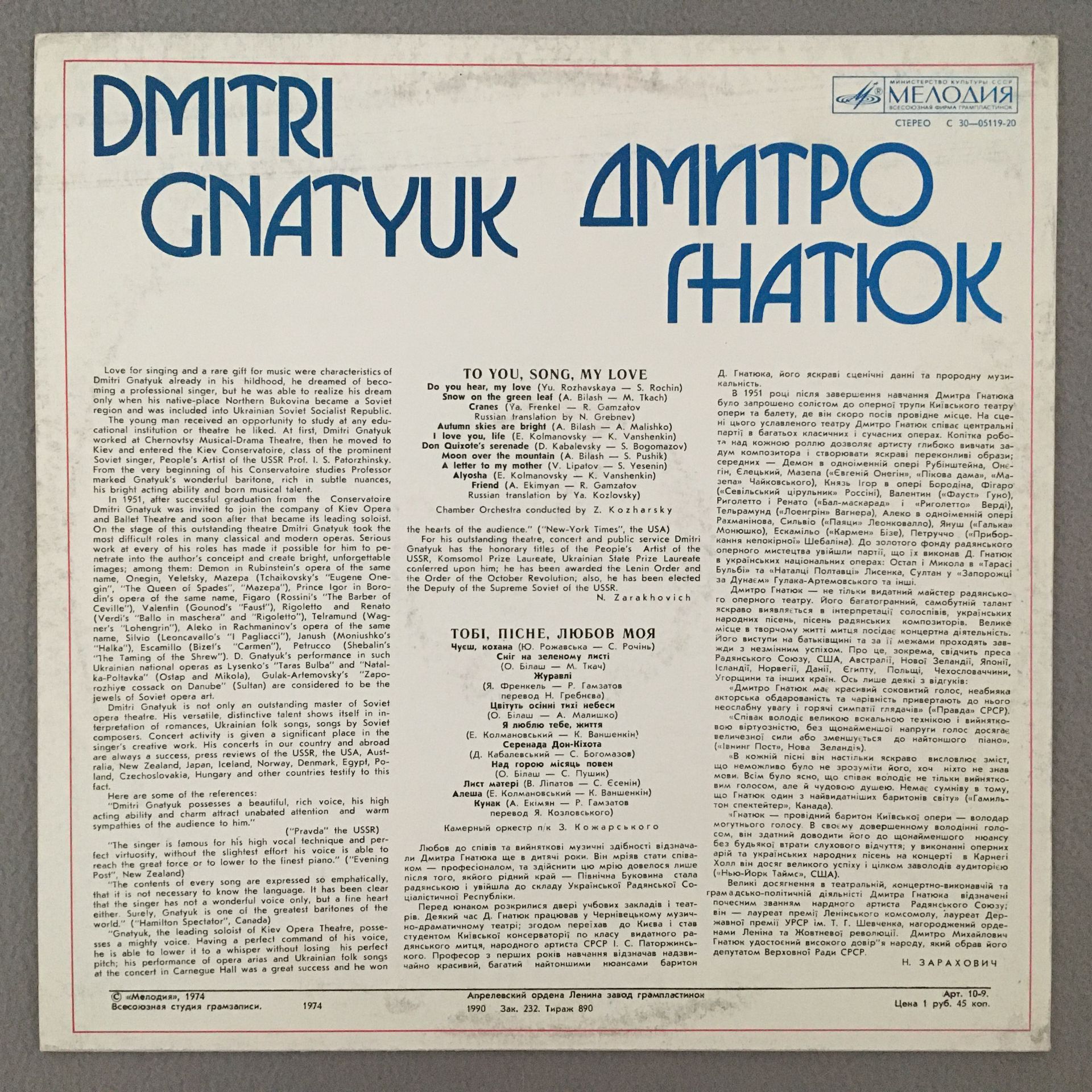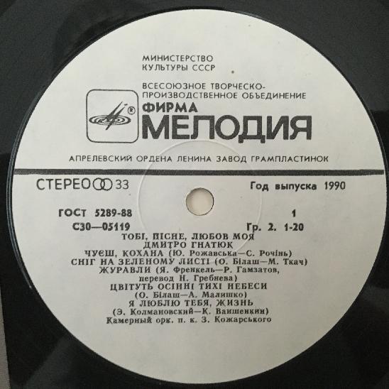 J572 Dmitri Gnatyuk To You, Song, My Love Melodiya C 30-05119-20 Stereo