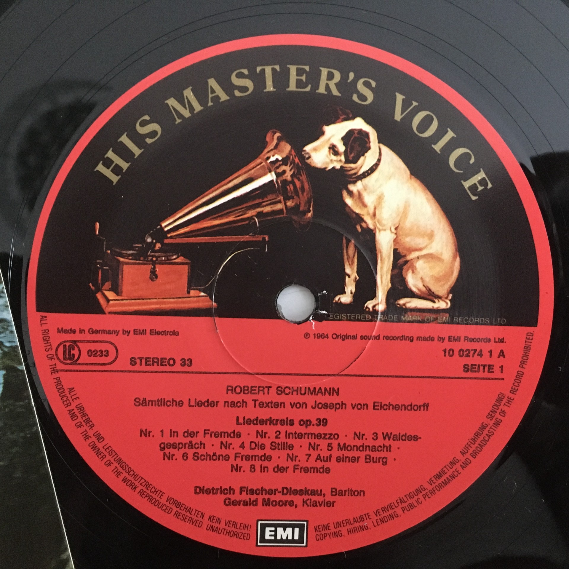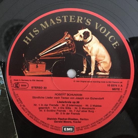 J604 Schumann Eichendorff Songs Fischer-Dieskau Moore EMI 1C 065 10 0274 1 St