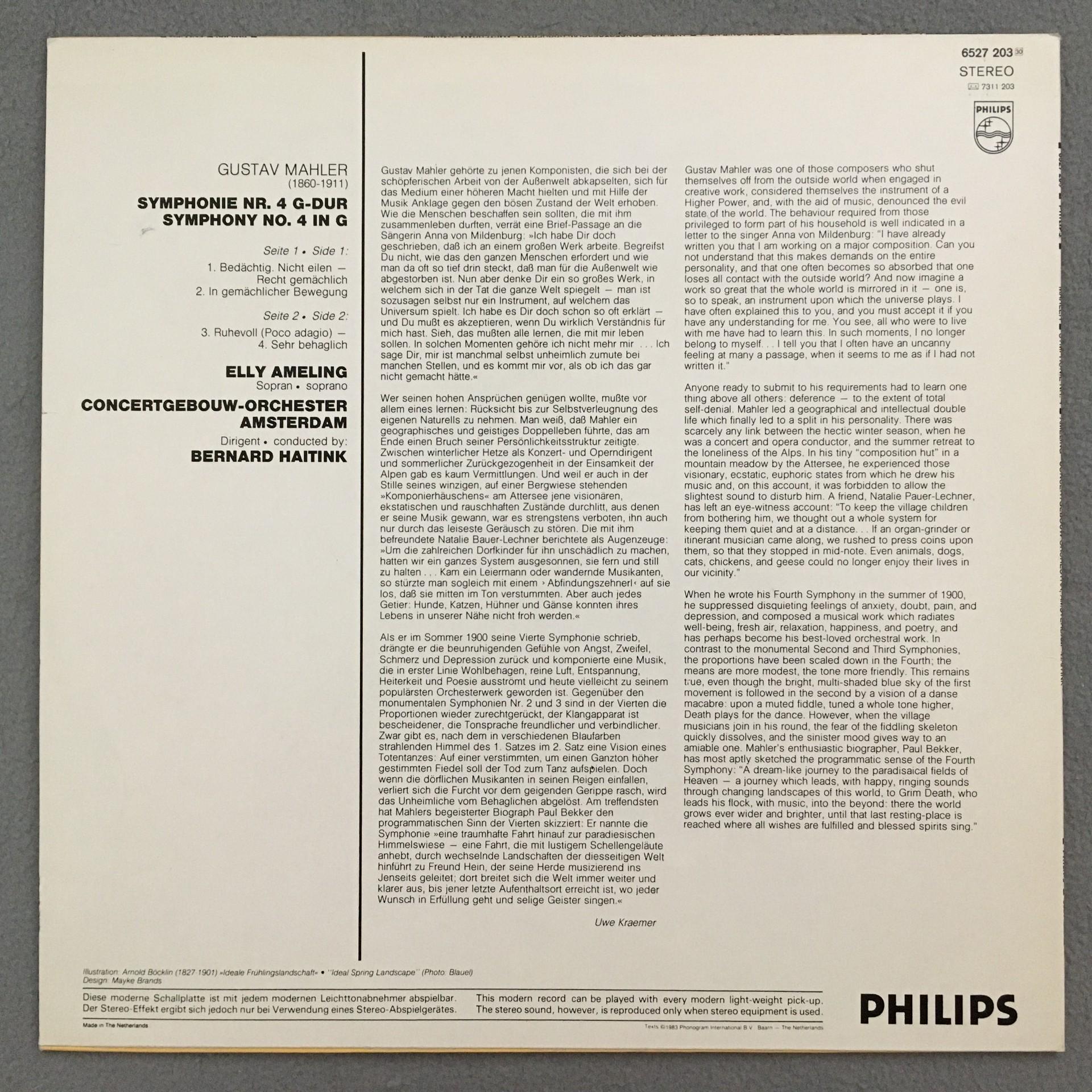 T857 Mahler Symphony No.4 Ameling Haitink Philips 6527 203 Stereo