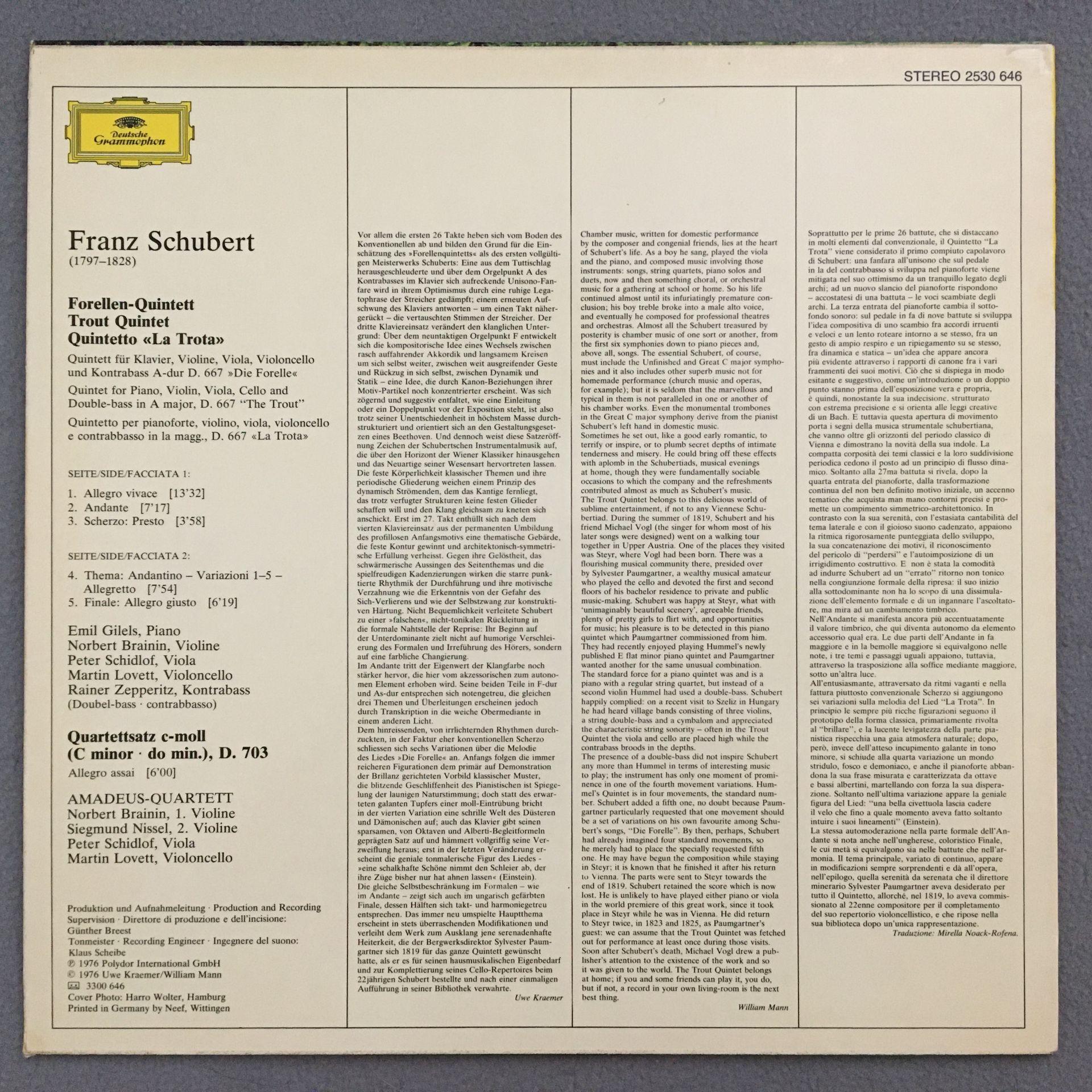 T866 Schubert Trout Quintet Gilels Zepperitz Amadeus Quartet DGG 2530 646 Stereo