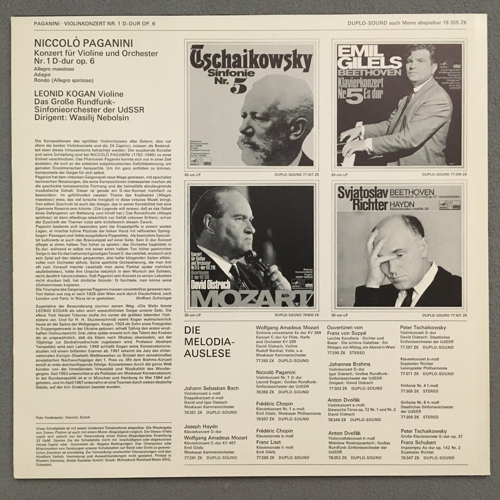 T878 Paganini Violin Concerto No.1 Kogan Nebolsin Melodiya 78 355 ZK Duplo Sound