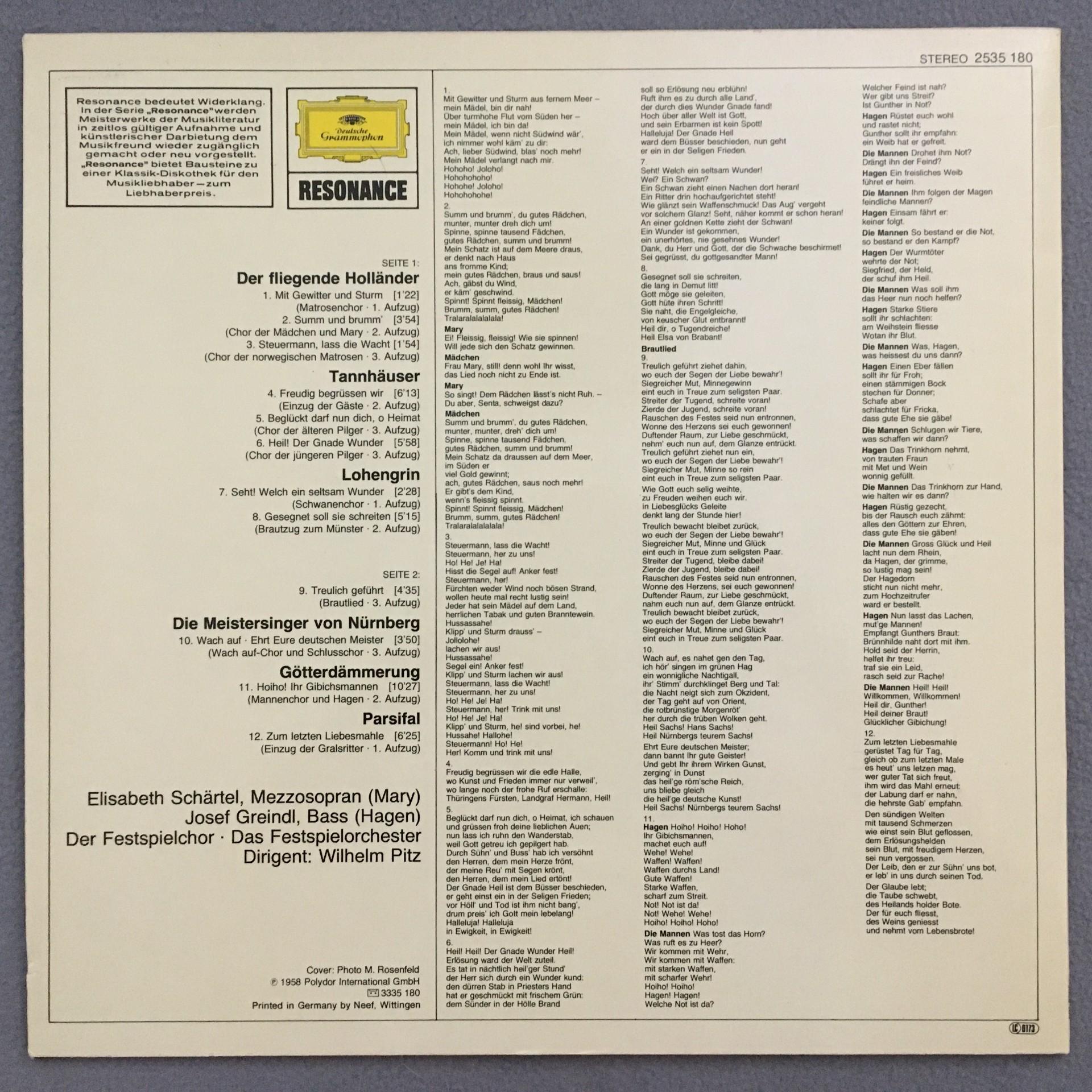 T886 Wagner Opera Choirs Pitz Bayreuther Festspiele DGG 2535 180 Stereo