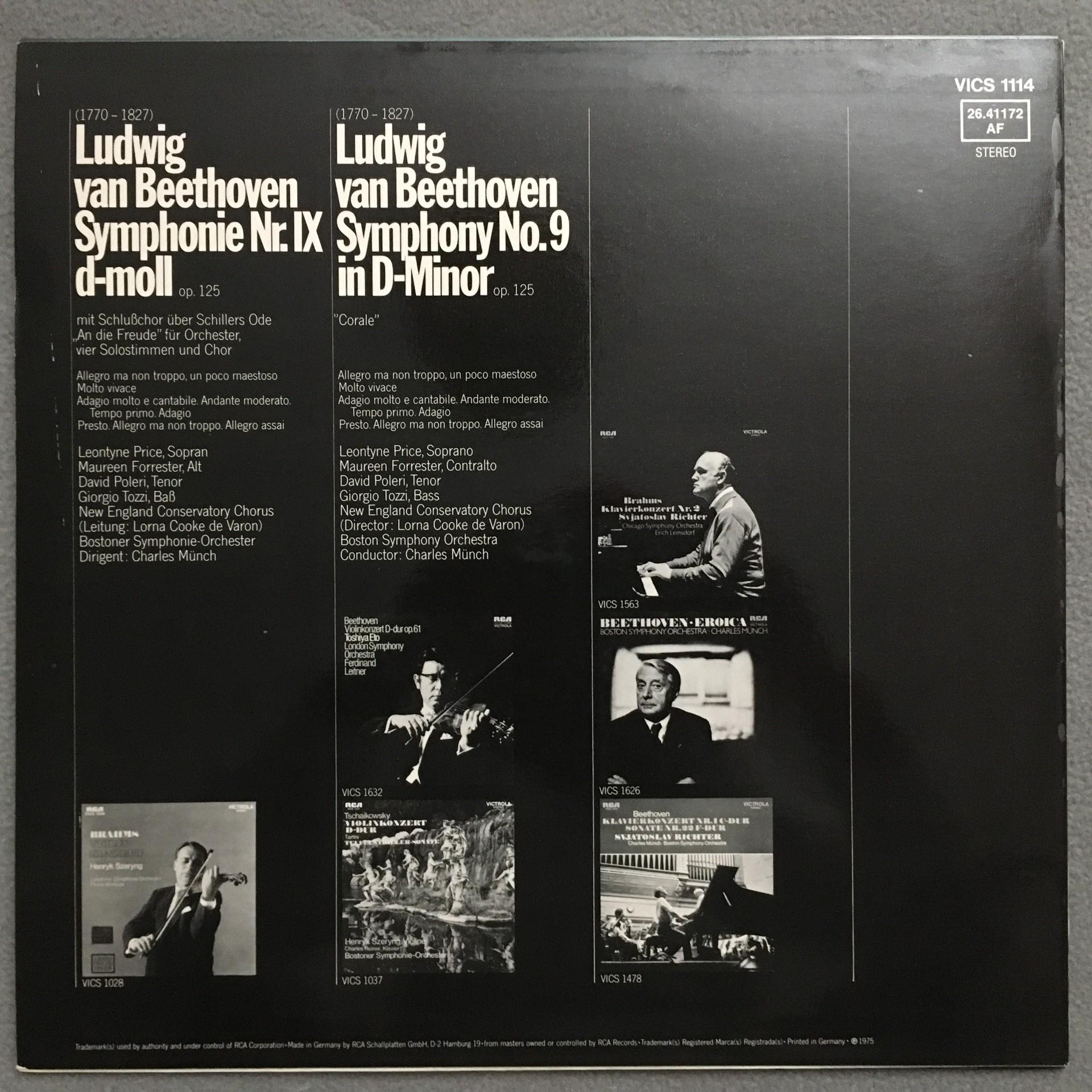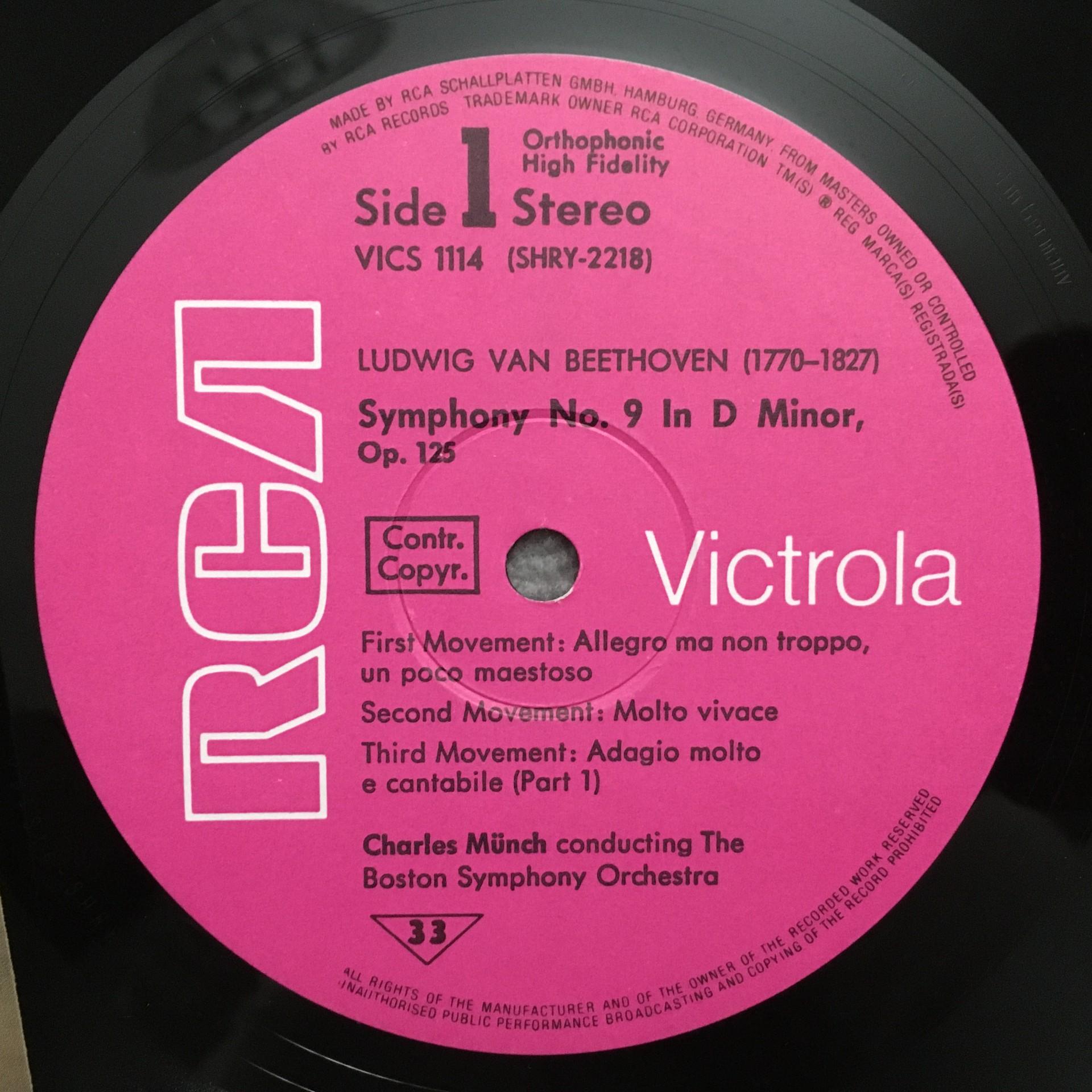 T892 Beethoven Symphony No.9 Price Munch RCA Victrola VICS 1114 Stereo