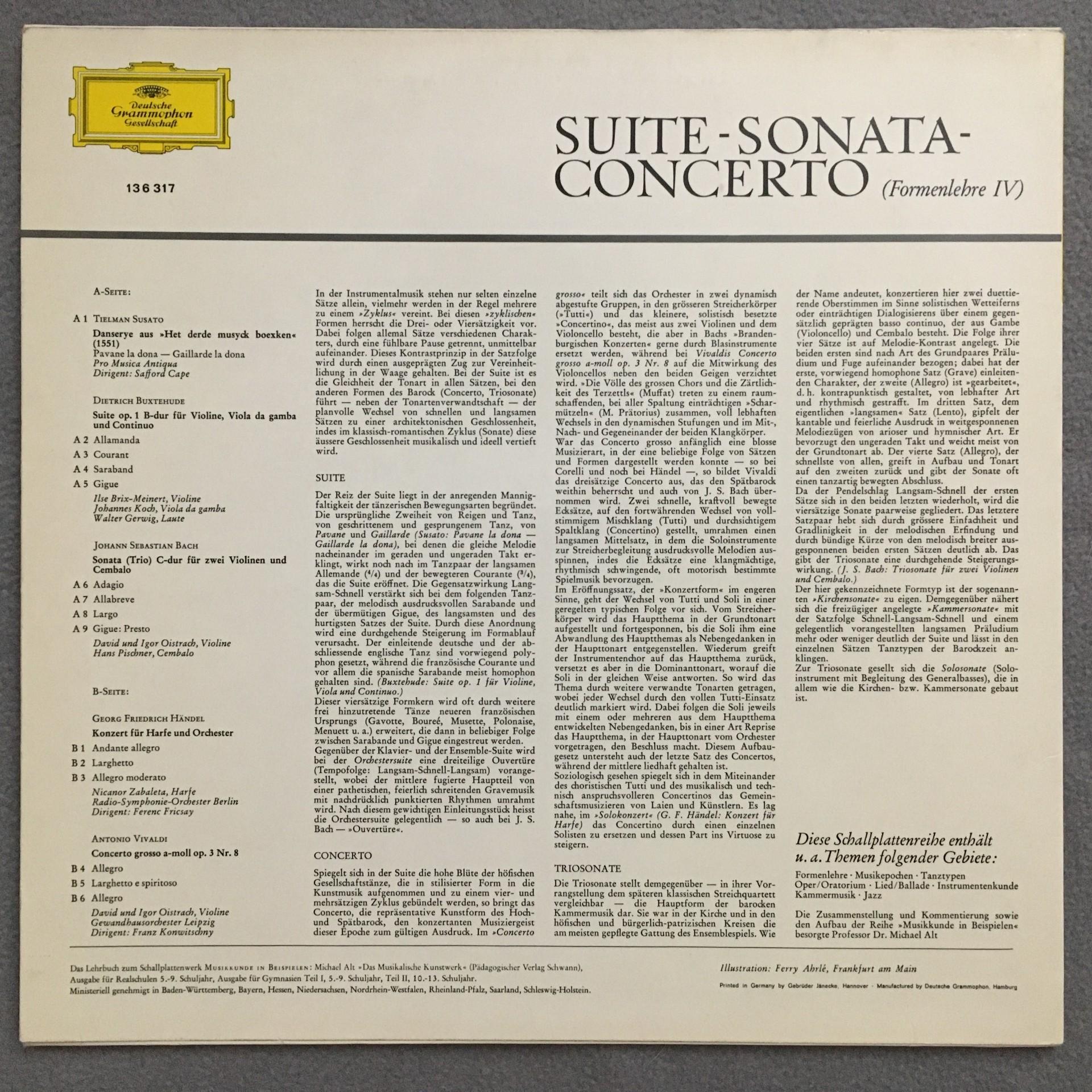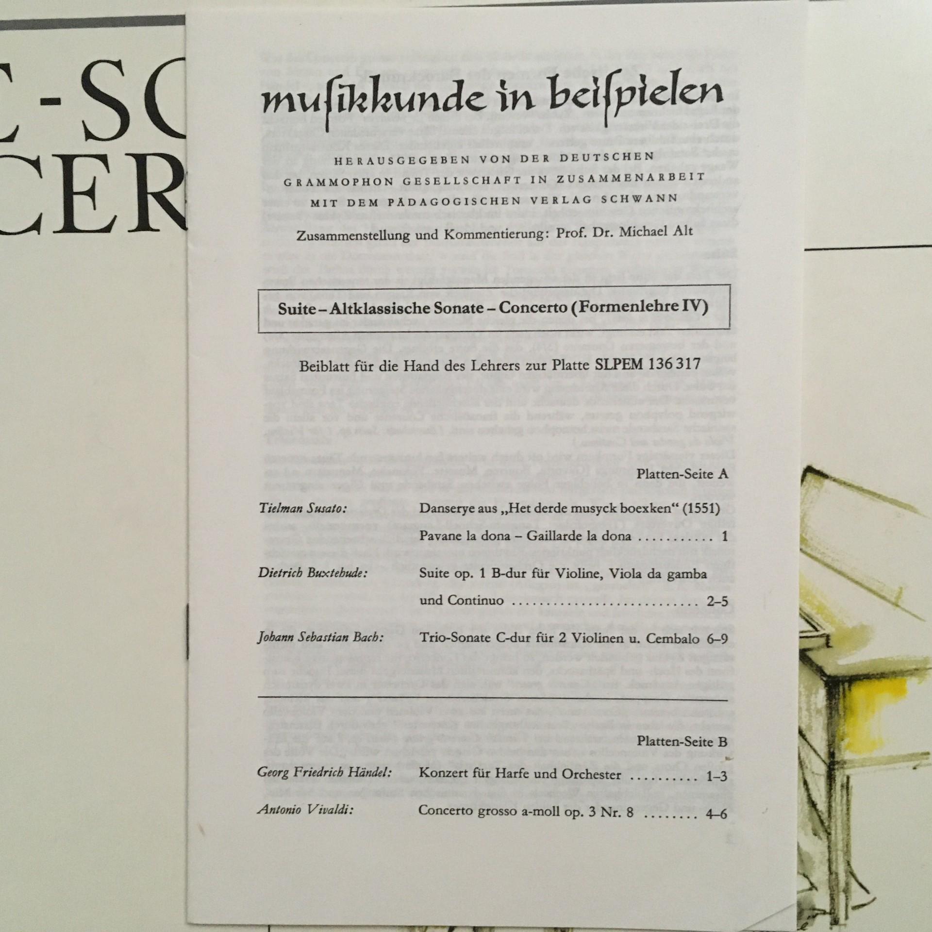 T896 Musicology in Examples Suite Sonata Concerto DGG 136 317 Stereo Tulip