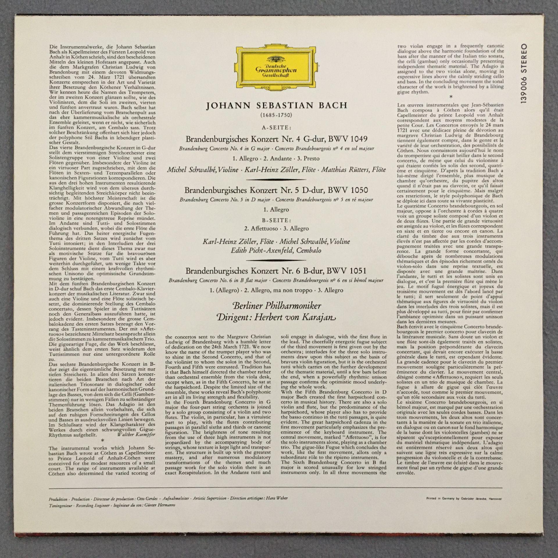 T905 Bach Brandenburg Concertos No.4 & 5 & 6 Karajan DGG 139 006 SLPM Stereo