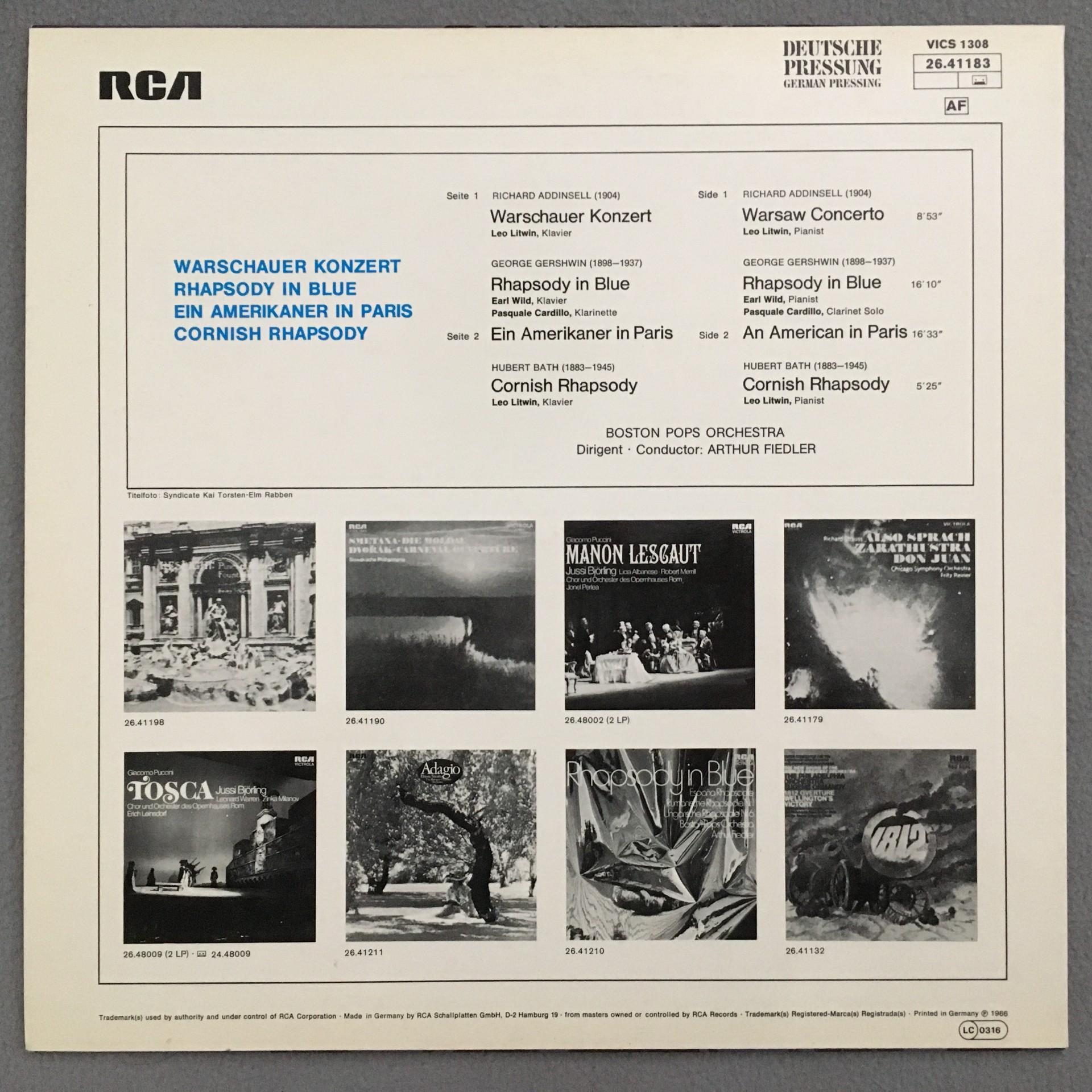 T907 Gershwin Rhapsody in Blue Addinsell Bath Fiedler RCA VICS 1308 Stereo