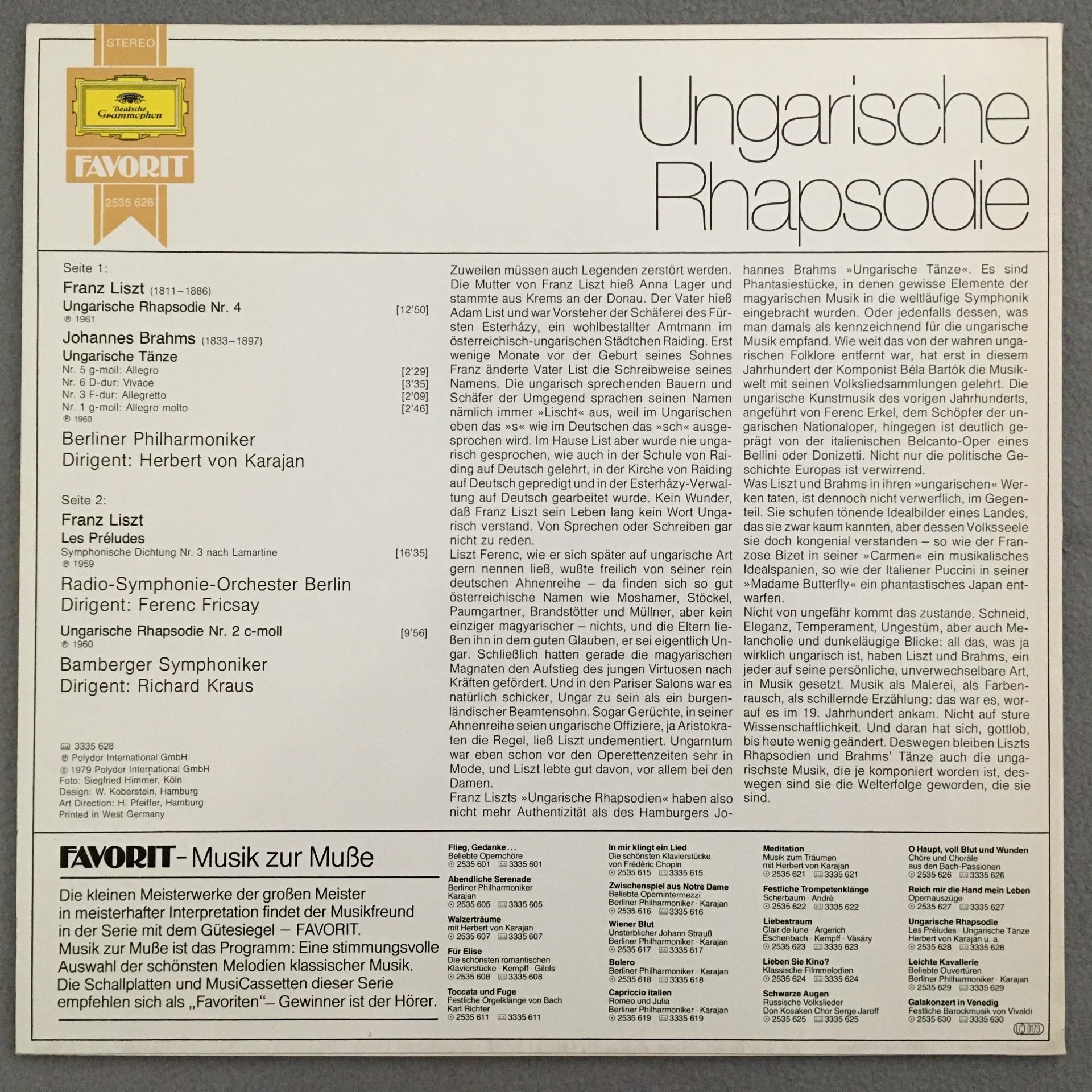 T909 Liszt Hungarian Rhapsody Liszt Preludes Fricsay DGG 2535 628 Stereo
