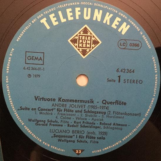 J620 Virtuoso Chamber Music Schulz Deutsch Telefunken 6.42364 AP Stereo