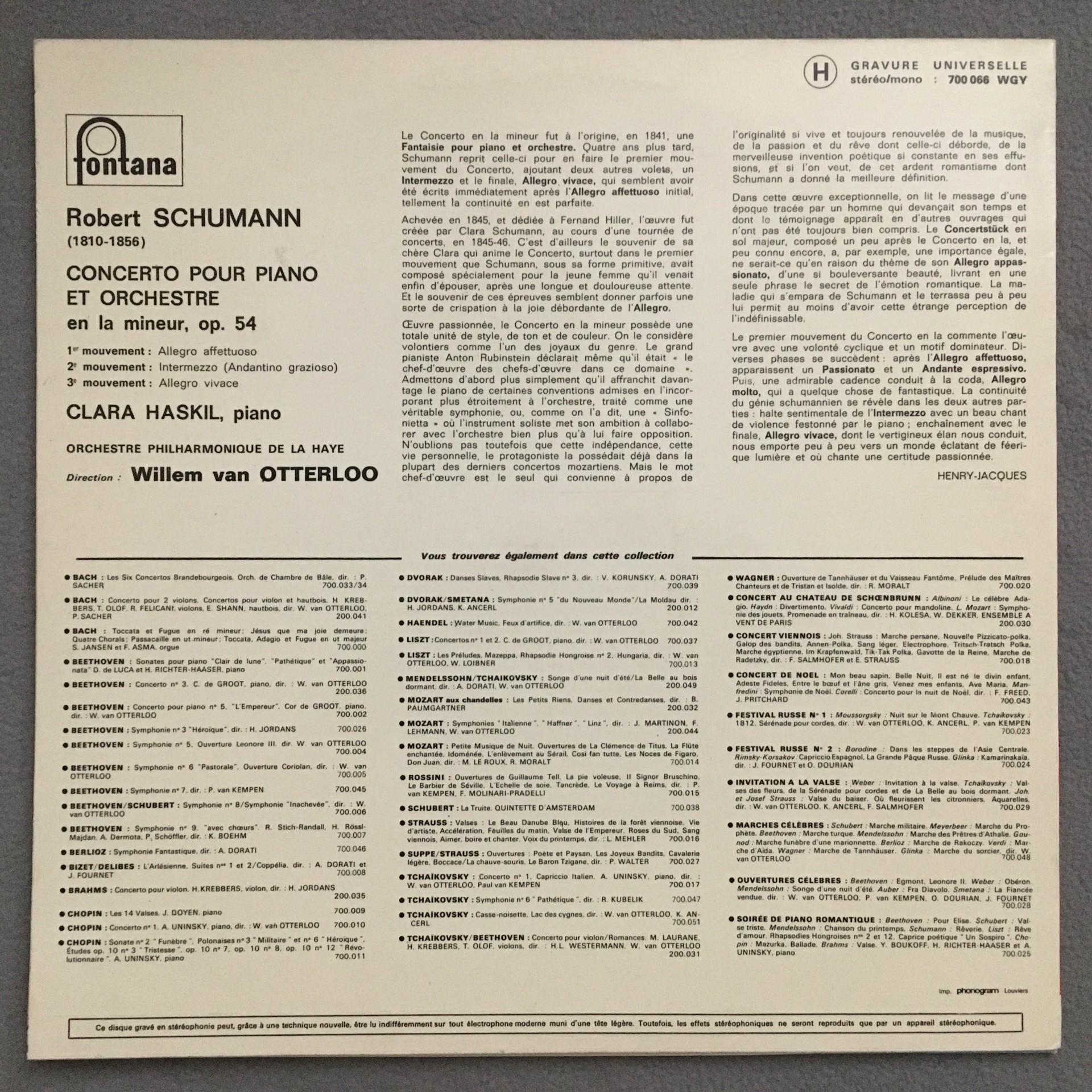 T923 Schumann Piano Concerto Haskil van Otterloo Fontana 700 066 WGY Stereo