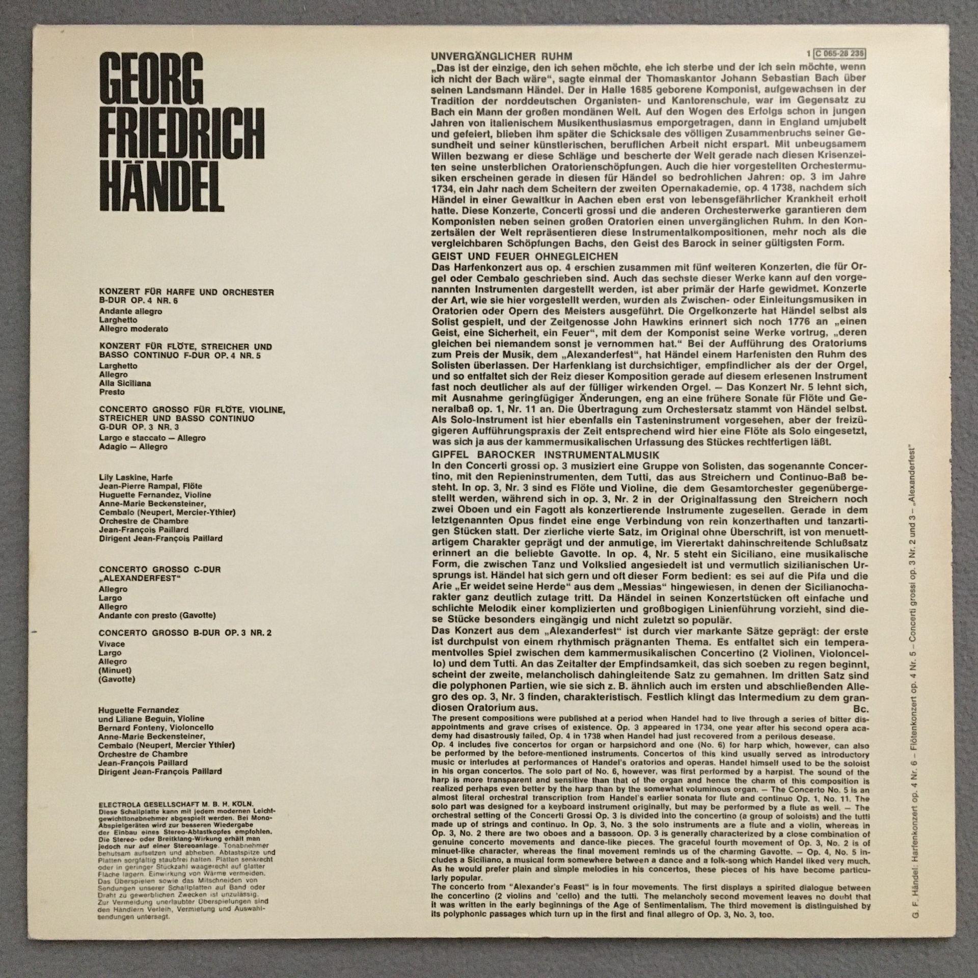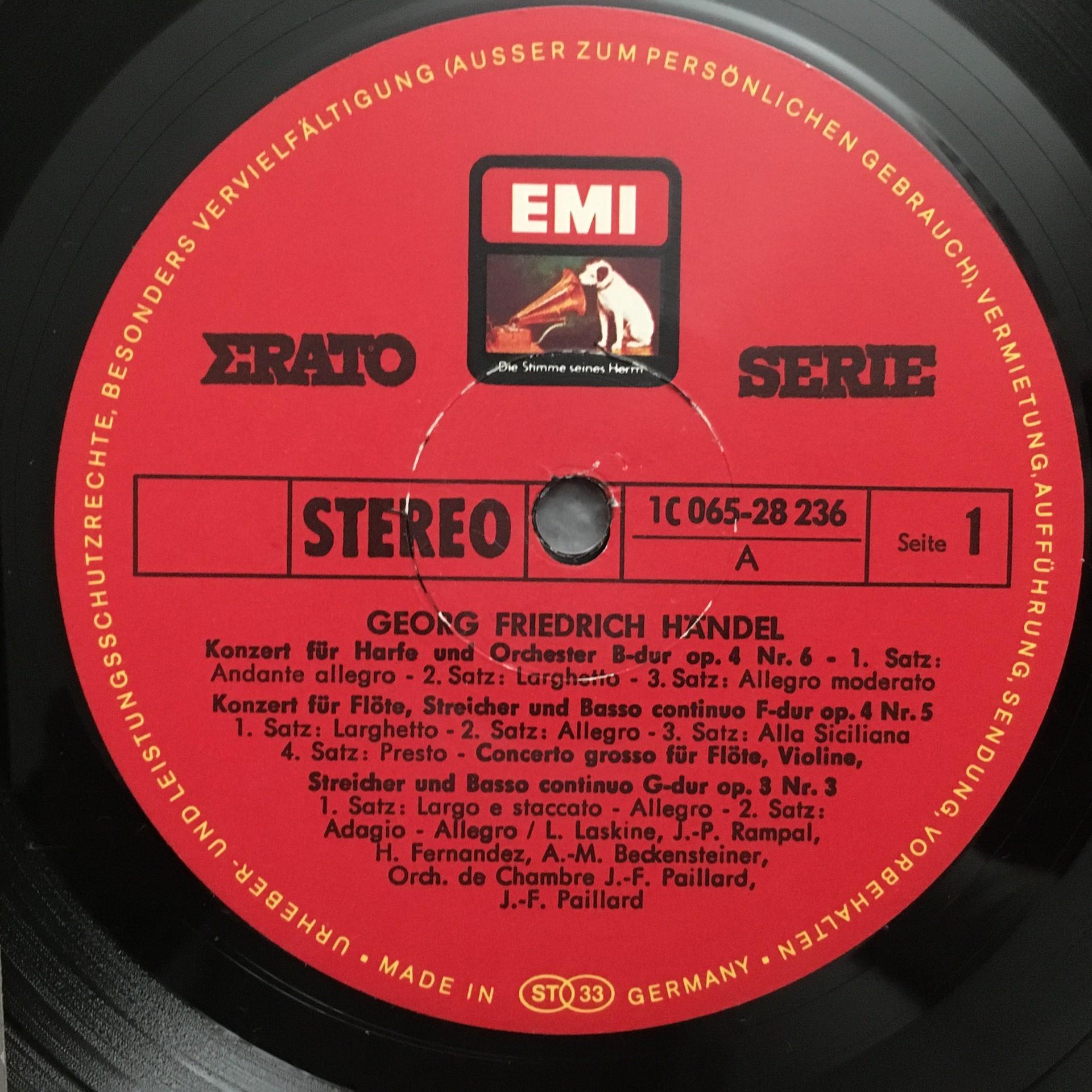 T924 Handel Concertos Laskine Rampal Paillard EMI 1 C 065-28 236 Stereo