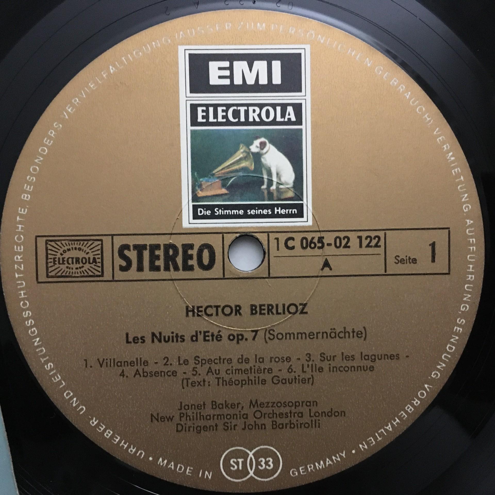 T926 Berlioz Sommernights Mahler Songs Baker Barbirolli EMI 1 C 065-02 122 St