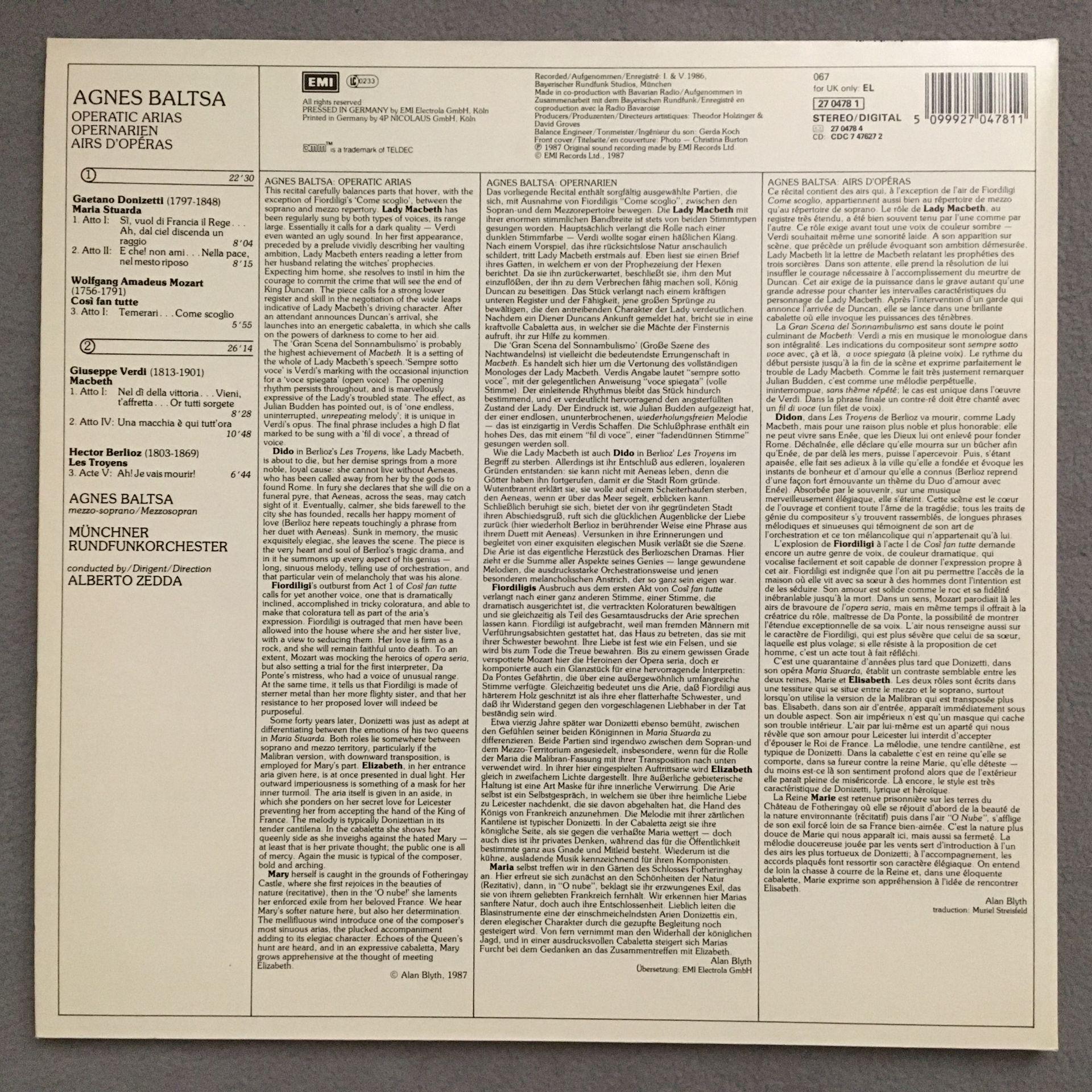 T929 Baltsa Arias Verdi Mozart Donizetti Zedda EMI 067 27 0478 1 Digital Stereo