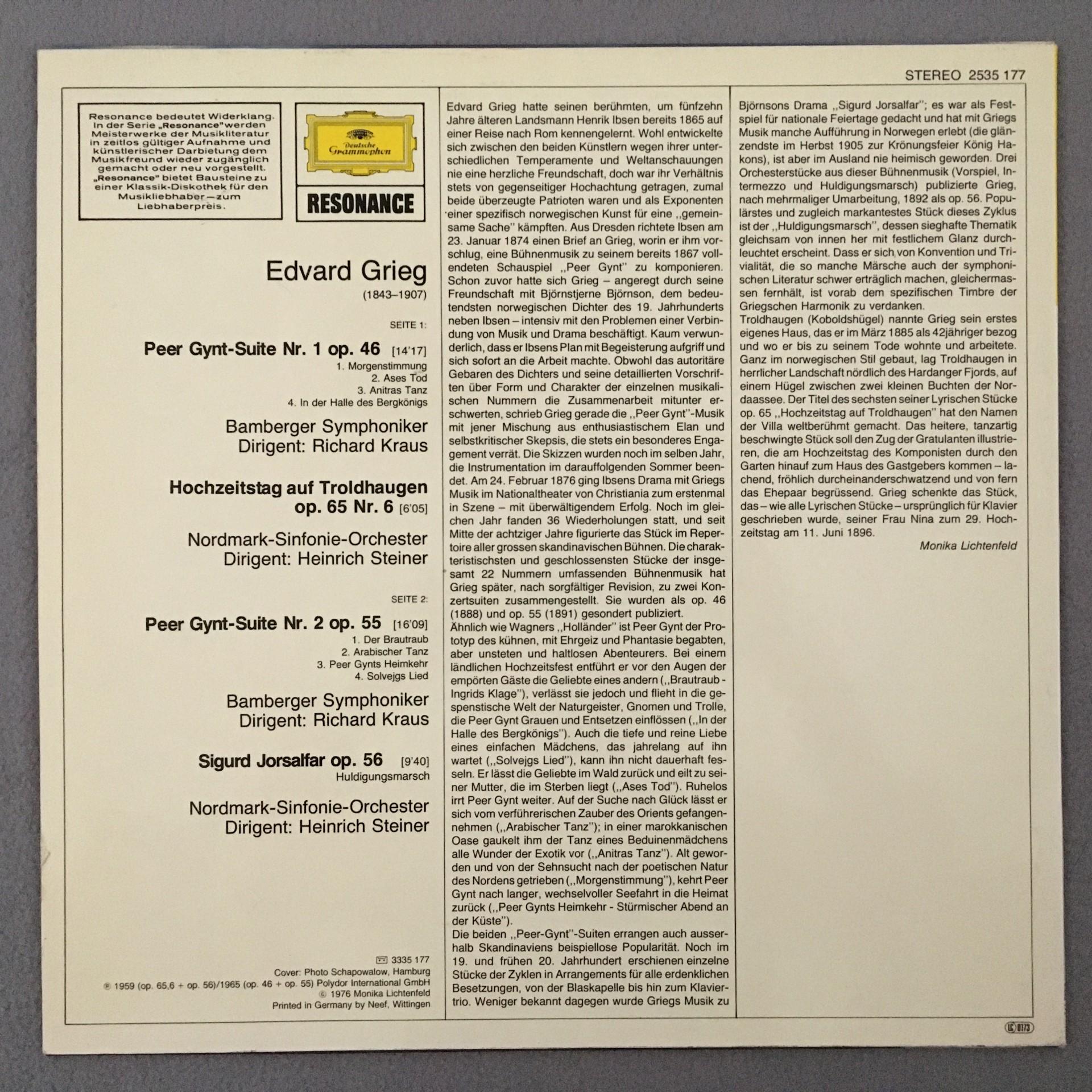 T940 Grieg Peer Gynt Suites Kraus Steiner DGG 2535 177 Stereo