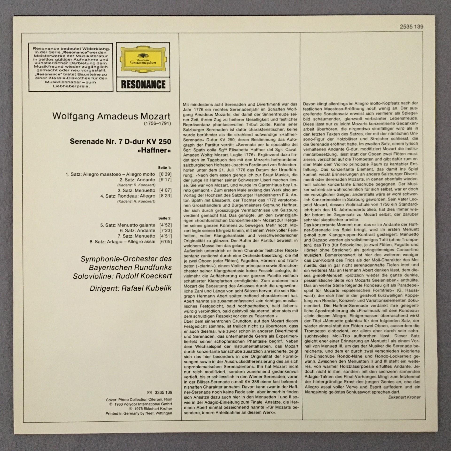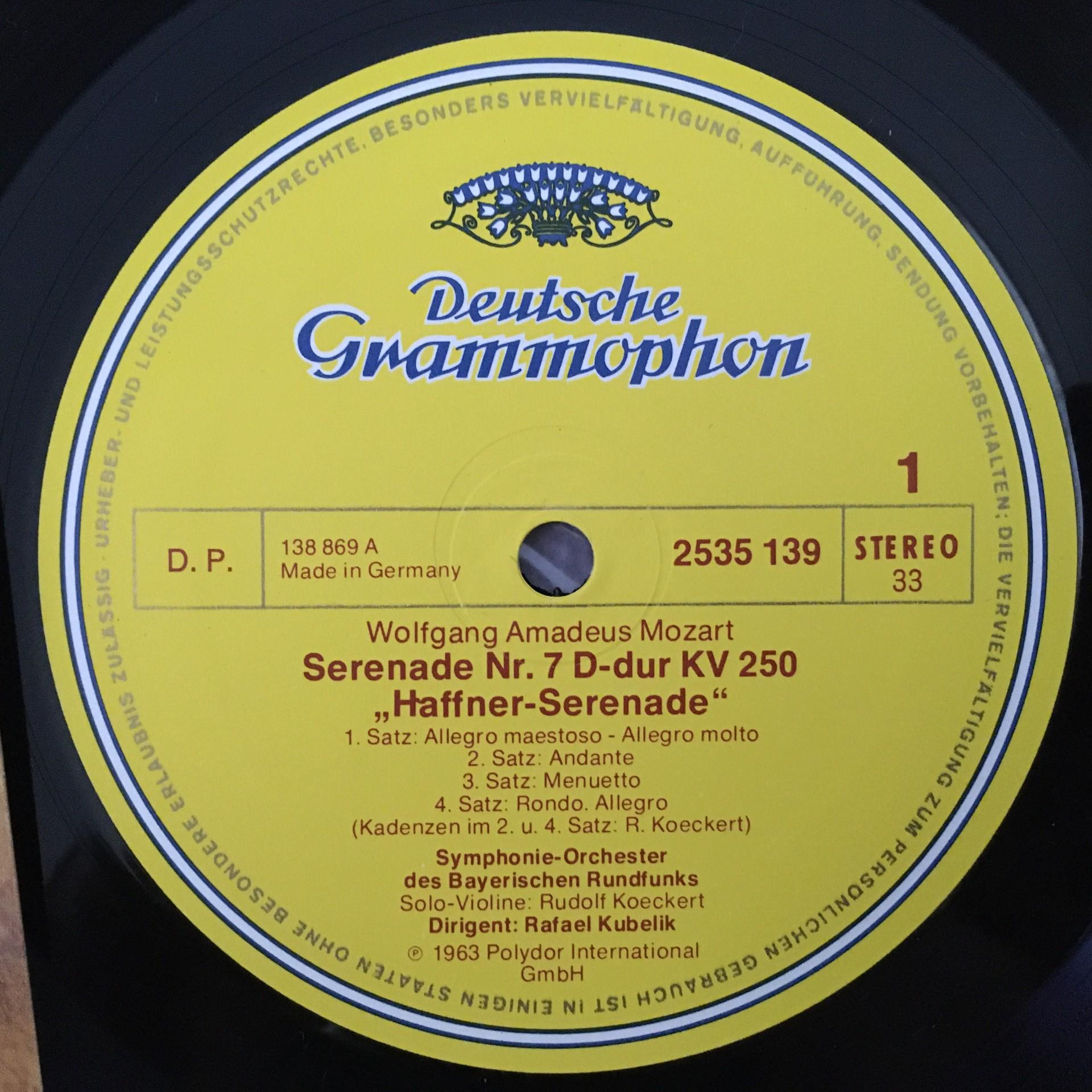 T941 Mozart Serenade No.7 Koeckert Kubelik DGG 2535 139 Stereo