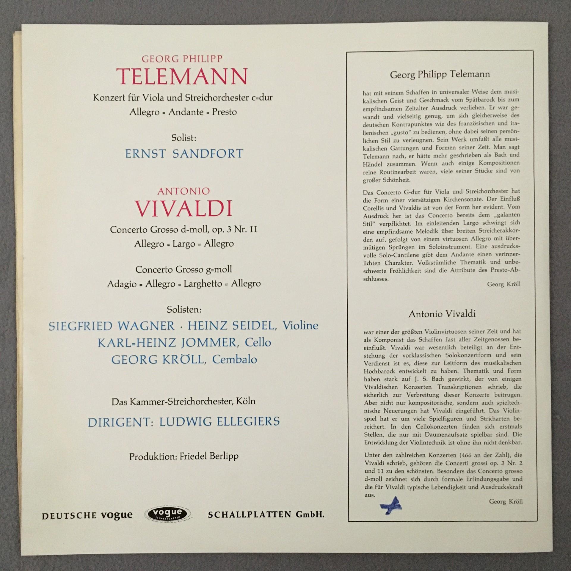 T948 Telemann Concerto Vivaldi Concerto Grosso Ellegiers Vogue LDKS 18 011 Ster