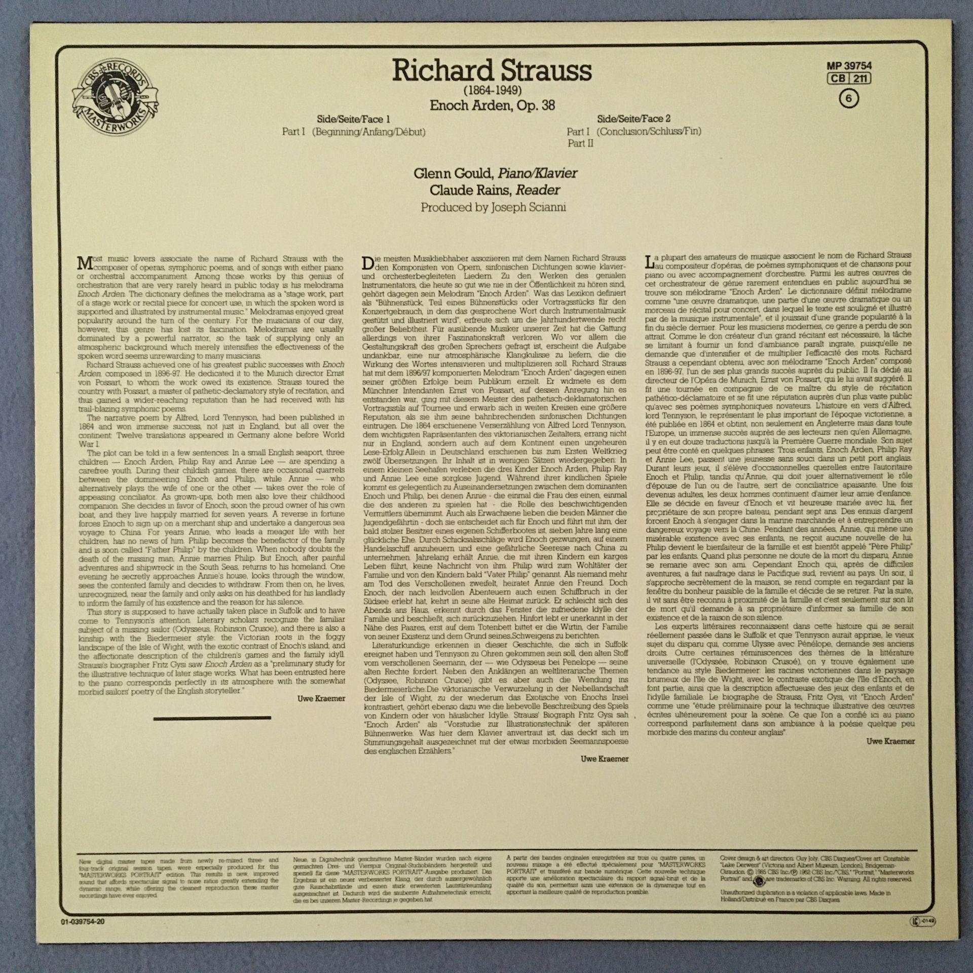 T952 R. Strauss Enoch Arden Op.38 Gould Piano Rains CBS MP 39754 Stereo