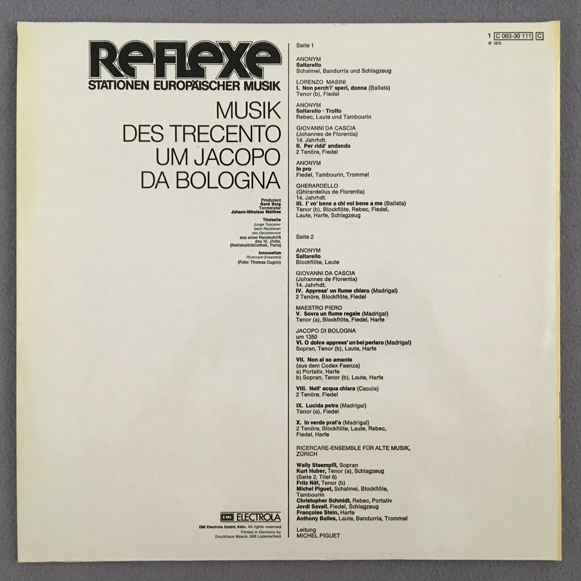 T969 Music in the Time of Jacopo da Bologna Piguet EMI Reflexe 1C 063-30 111 St