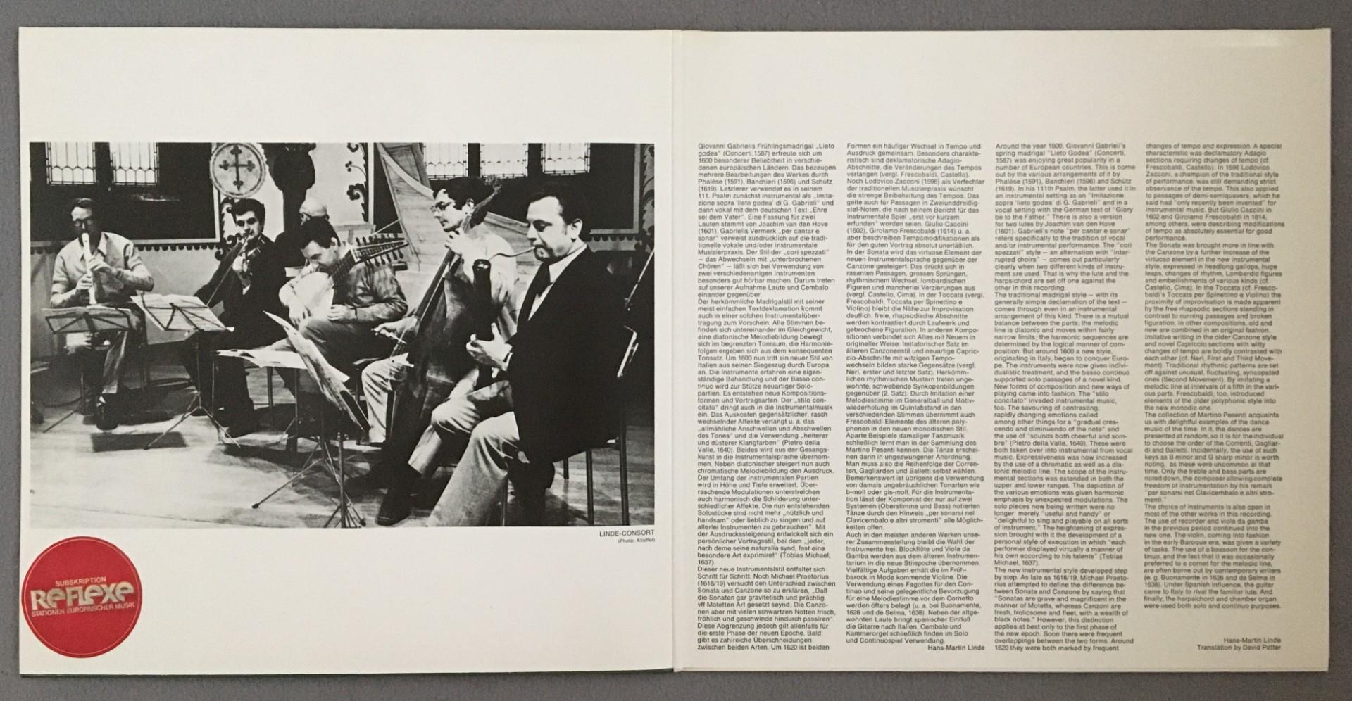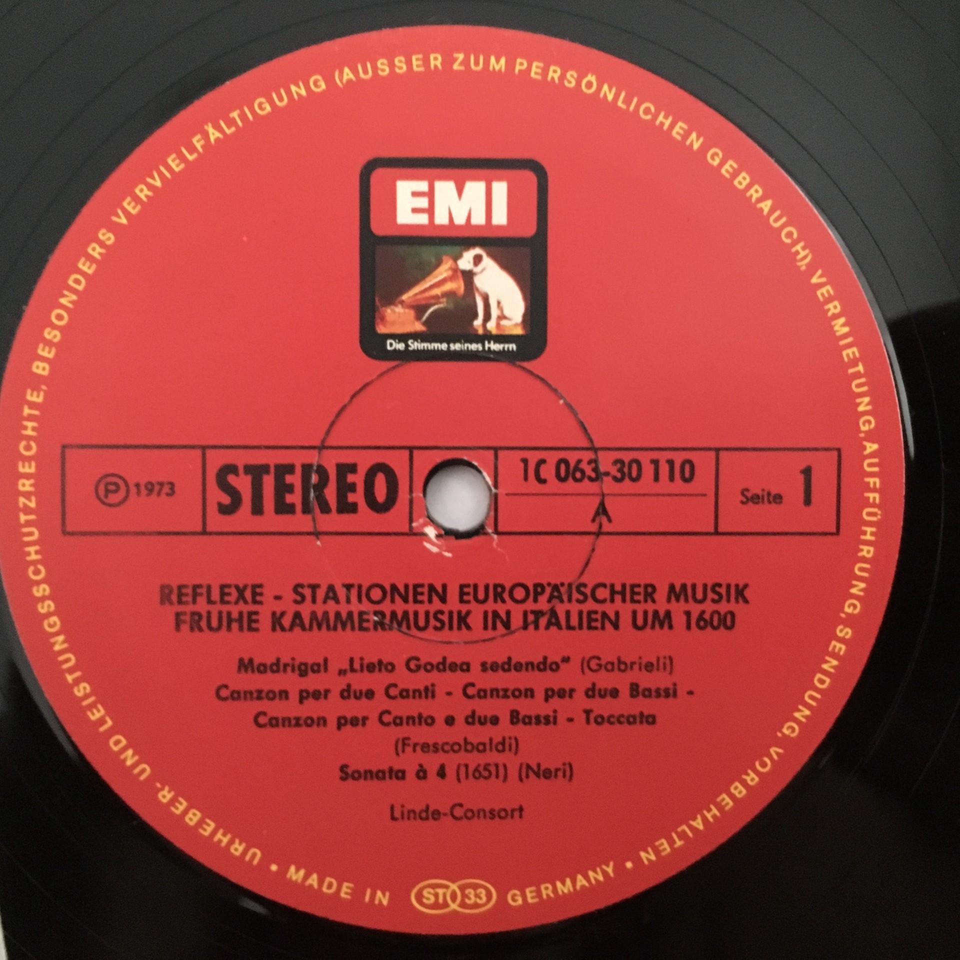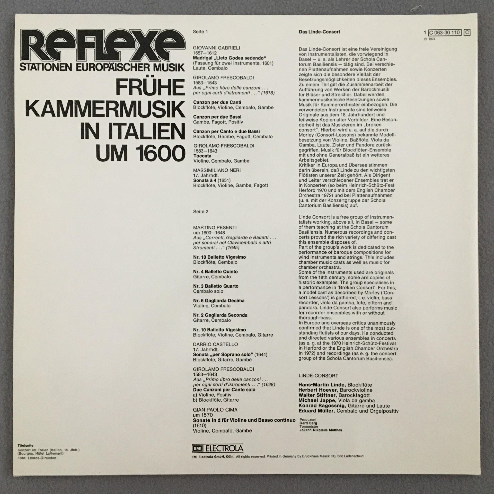 T973 Early Chamber Music in Italy 1600 Linde Consort EMI Reflexe 1C 063-30 110