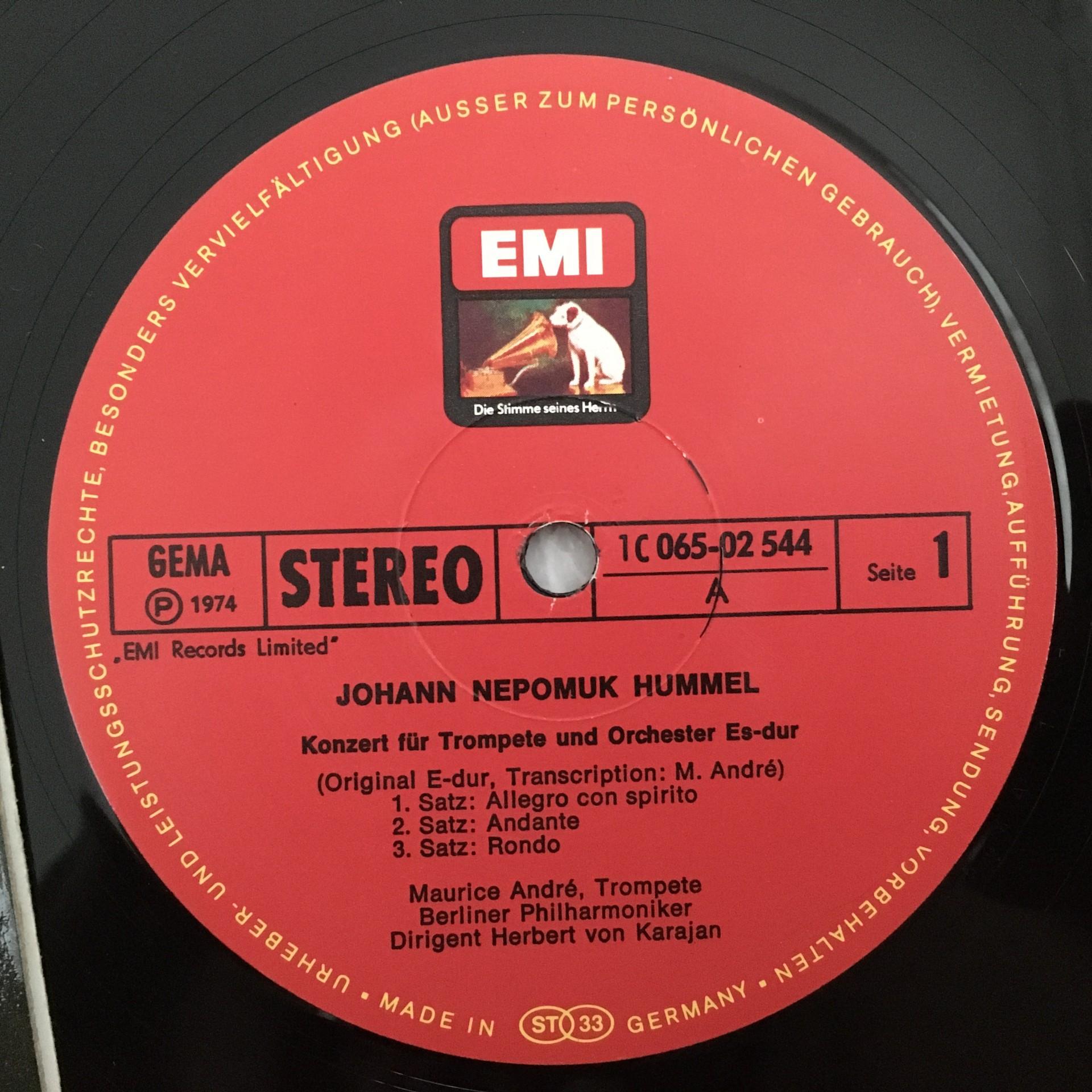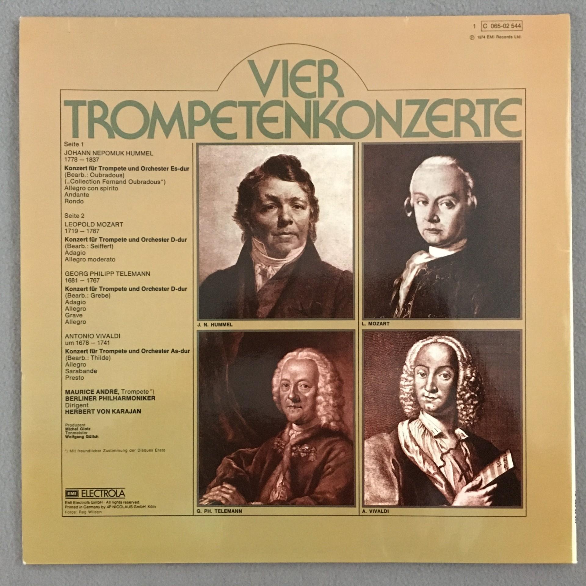 T985 4 Trumpet Concertos Vivaldi Telemann Andre Karajan EMI 1C 065-02 544 Stereo