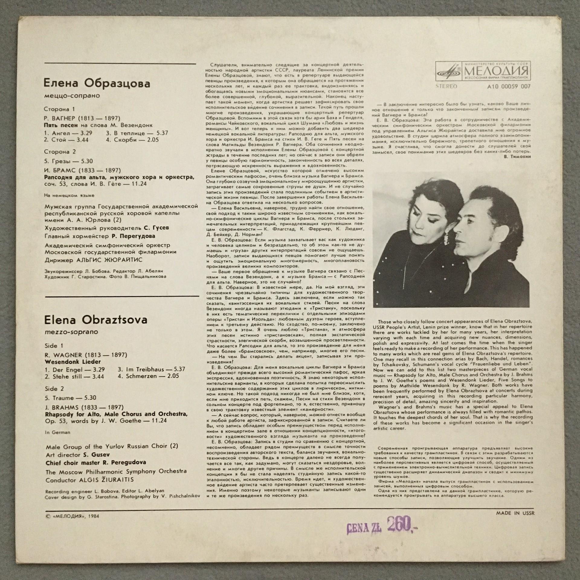 T987 Obraztsova Wagner Wesendonk Lieder Brahms Melodiya A10 00059 007 Stereo