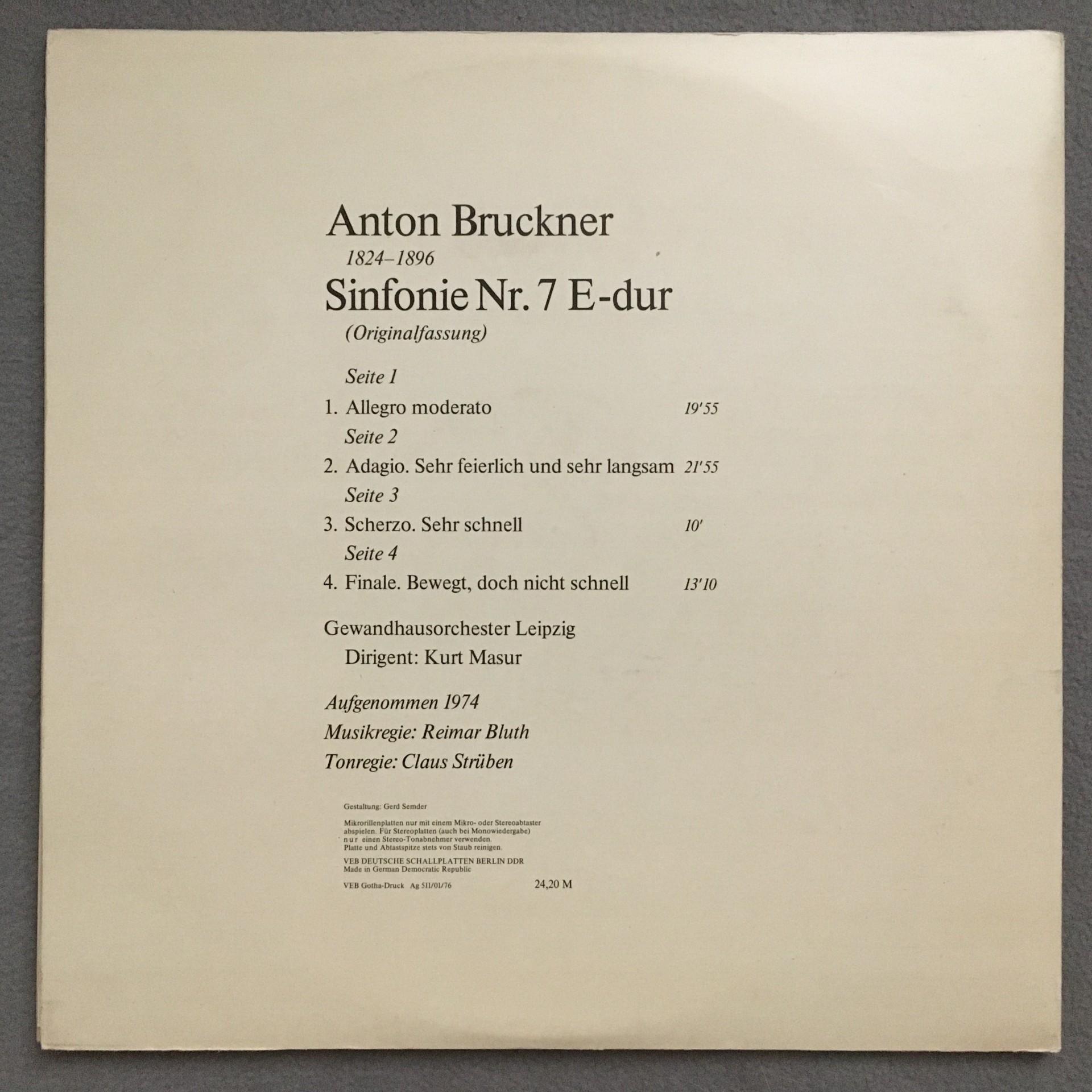 T991 Bruckner Symphony No.7 Masur 2LP Eterna 8 26 759-760 Stereo