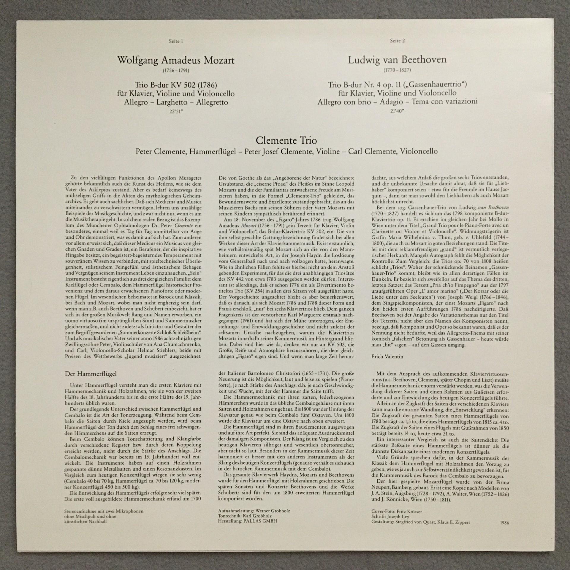 T992 Mozart Beethoven Piano Trios Clemente Trio Private 1986 Stereo