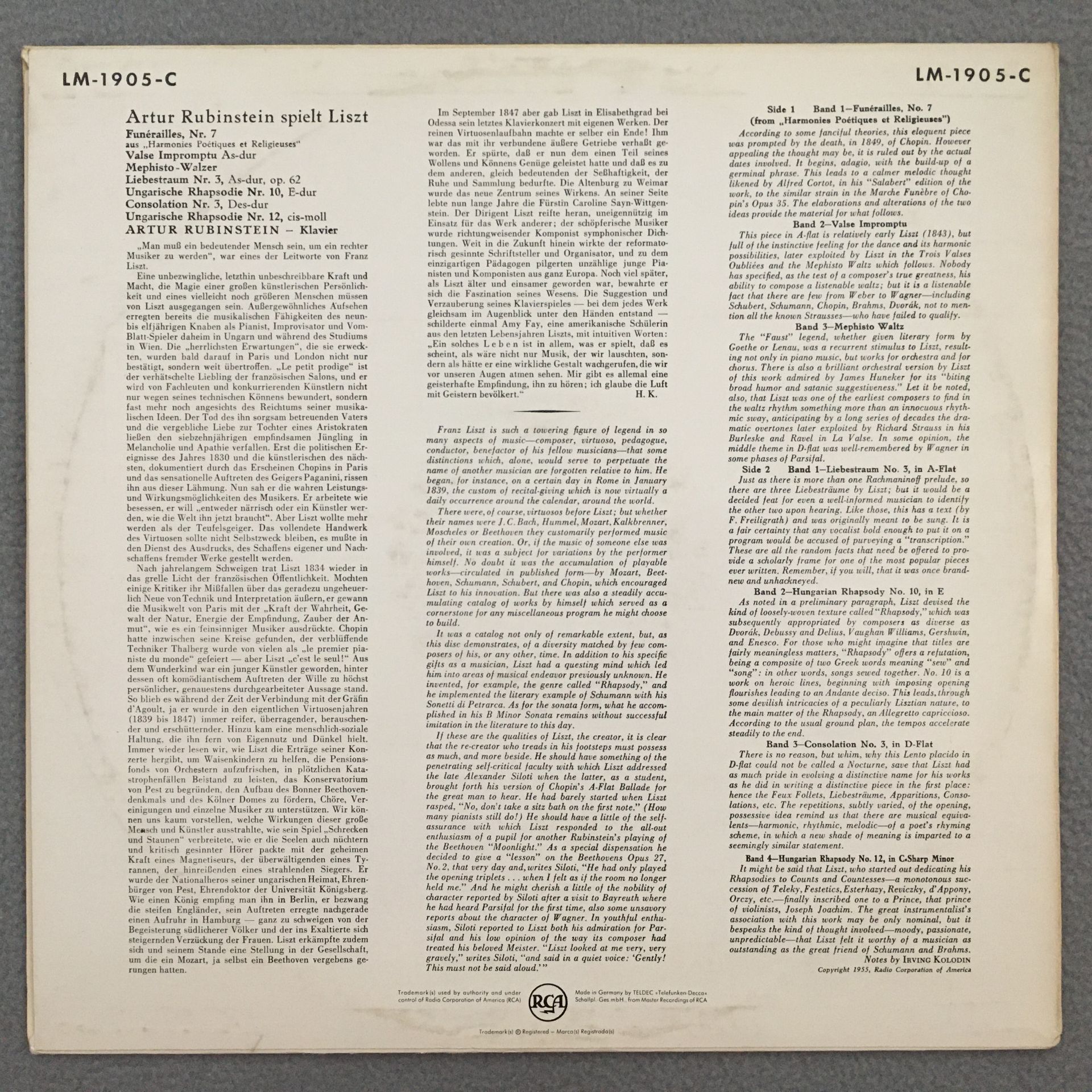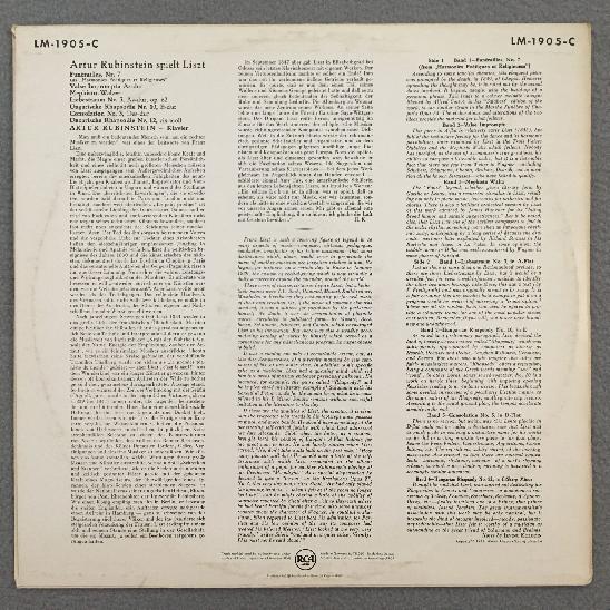 J636 Rubinstein plays Liszt Piano RCA LM-1905-C
