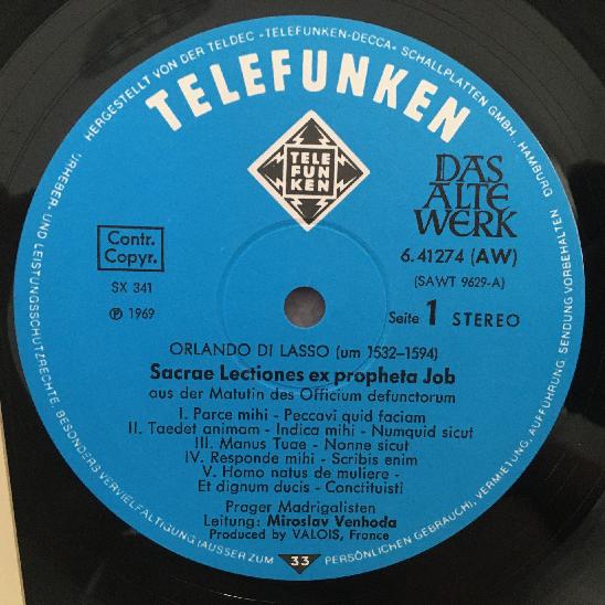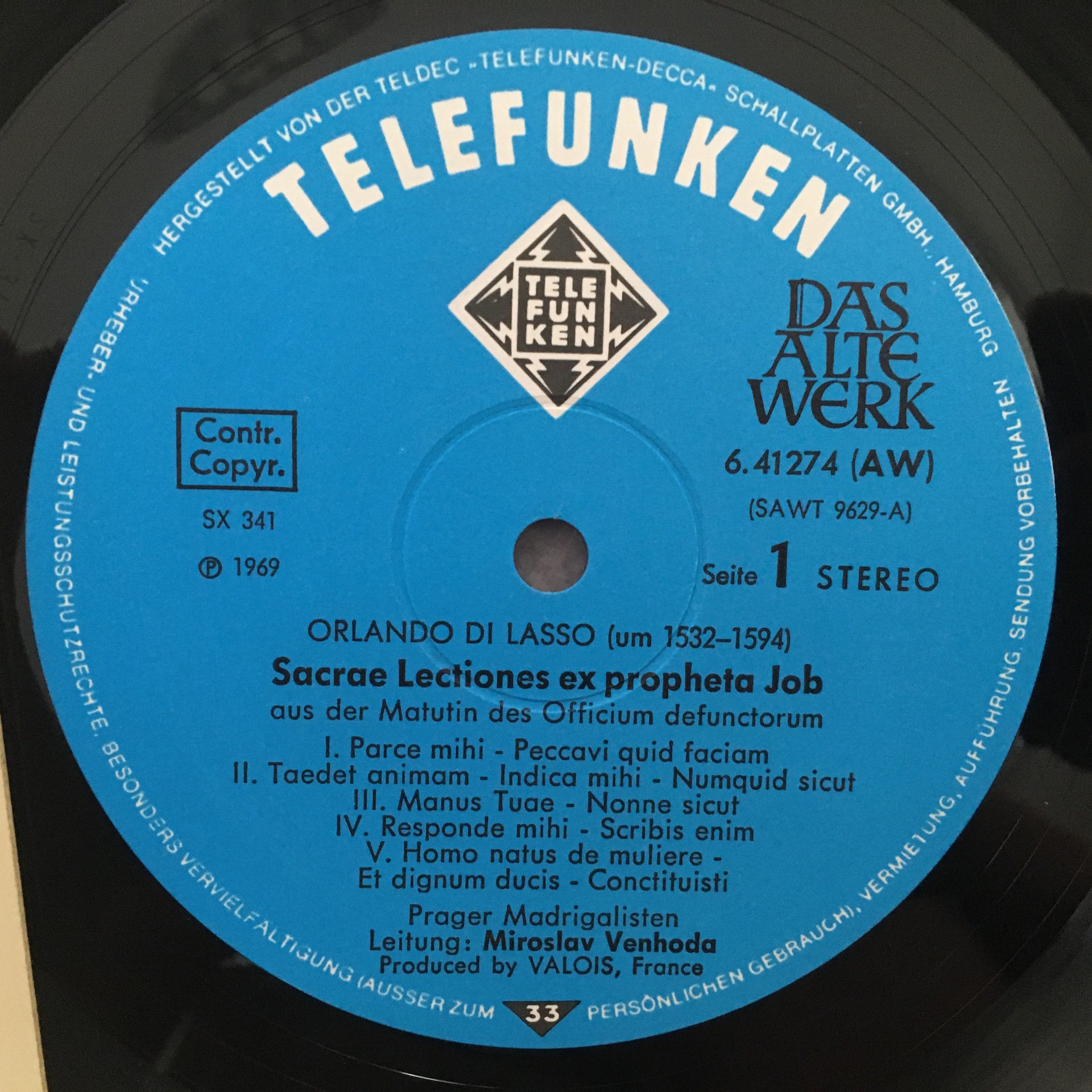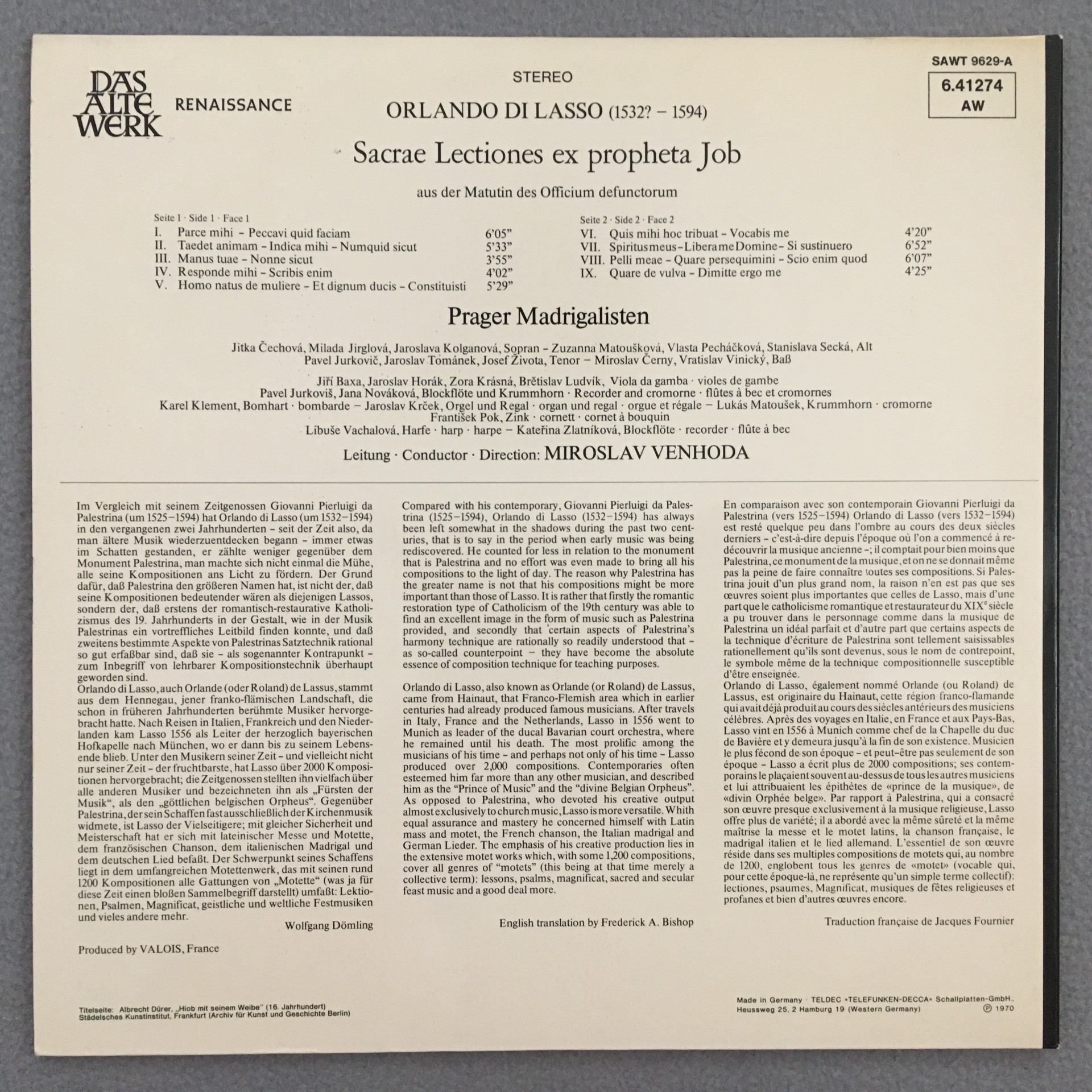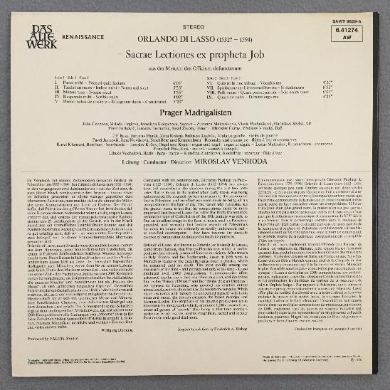 J642 Di Lasso Sacrae Lectiones ex Propheta Job Venhoda Telefunken 6.41274 AW Ste