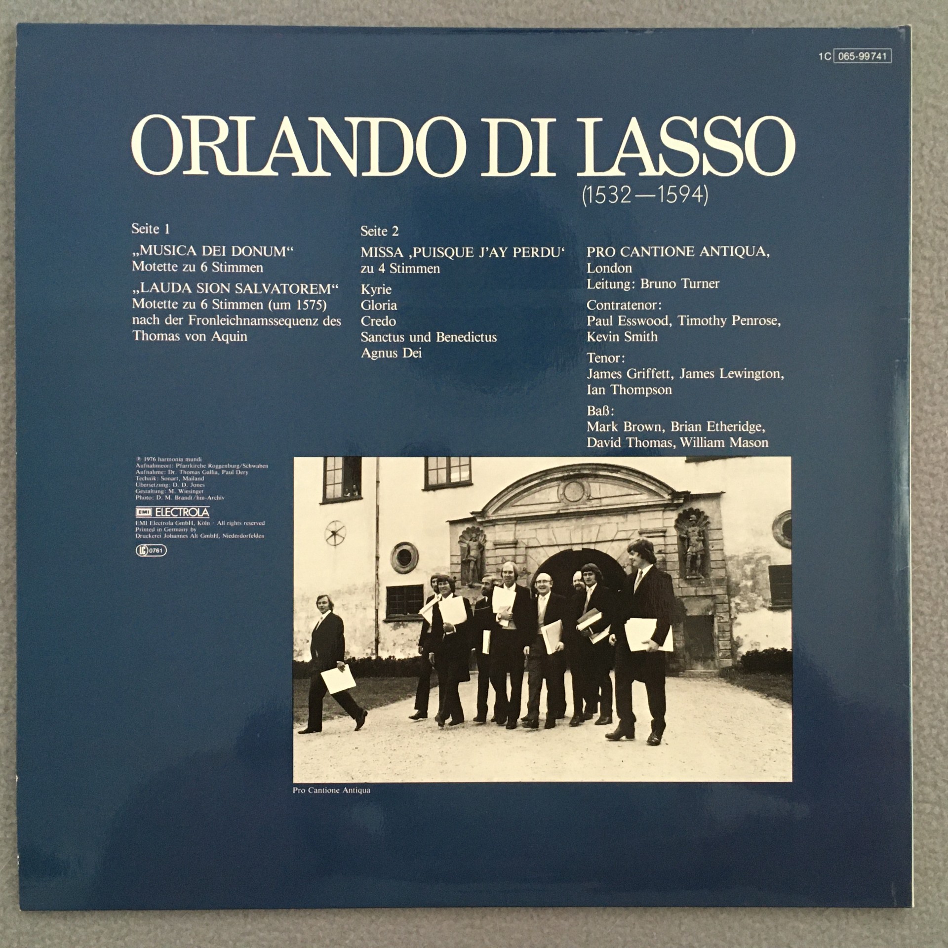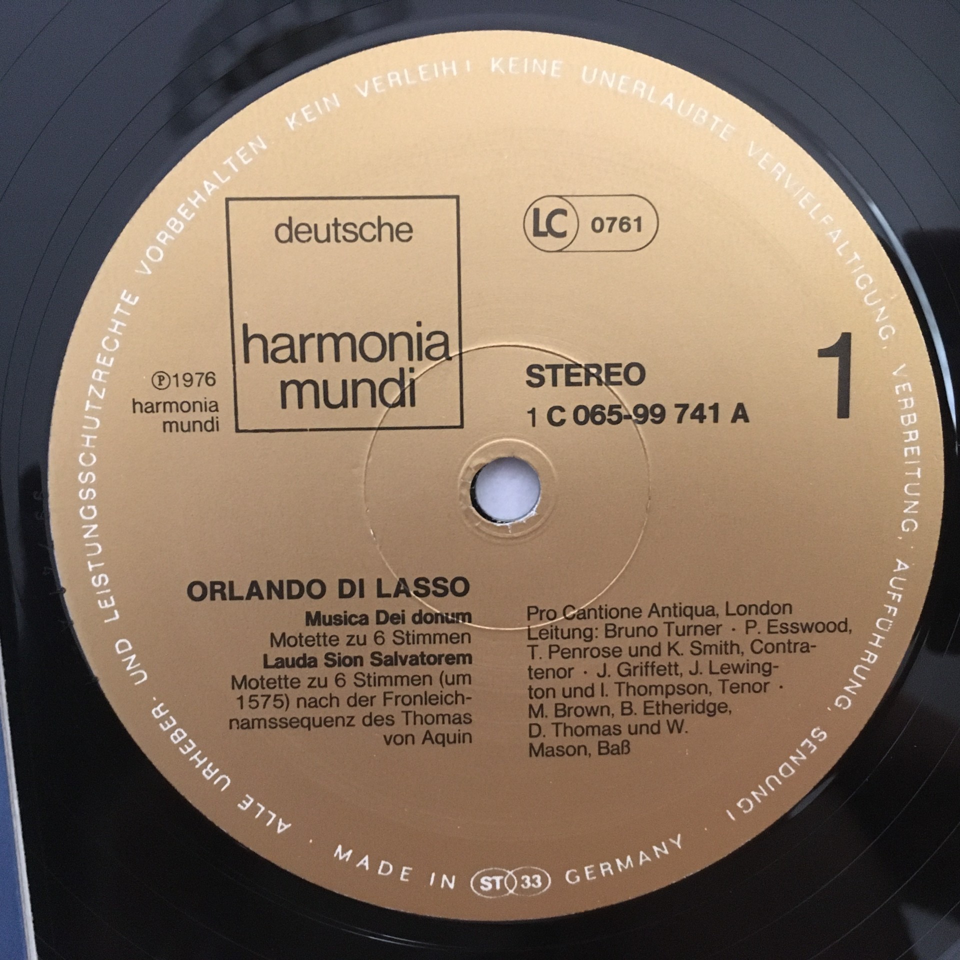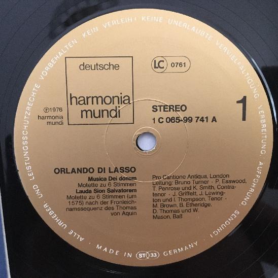J645 Di Lasso Motets Mass Esswood Turner Harmonia Mundi 1C 065-99 741 Stereo