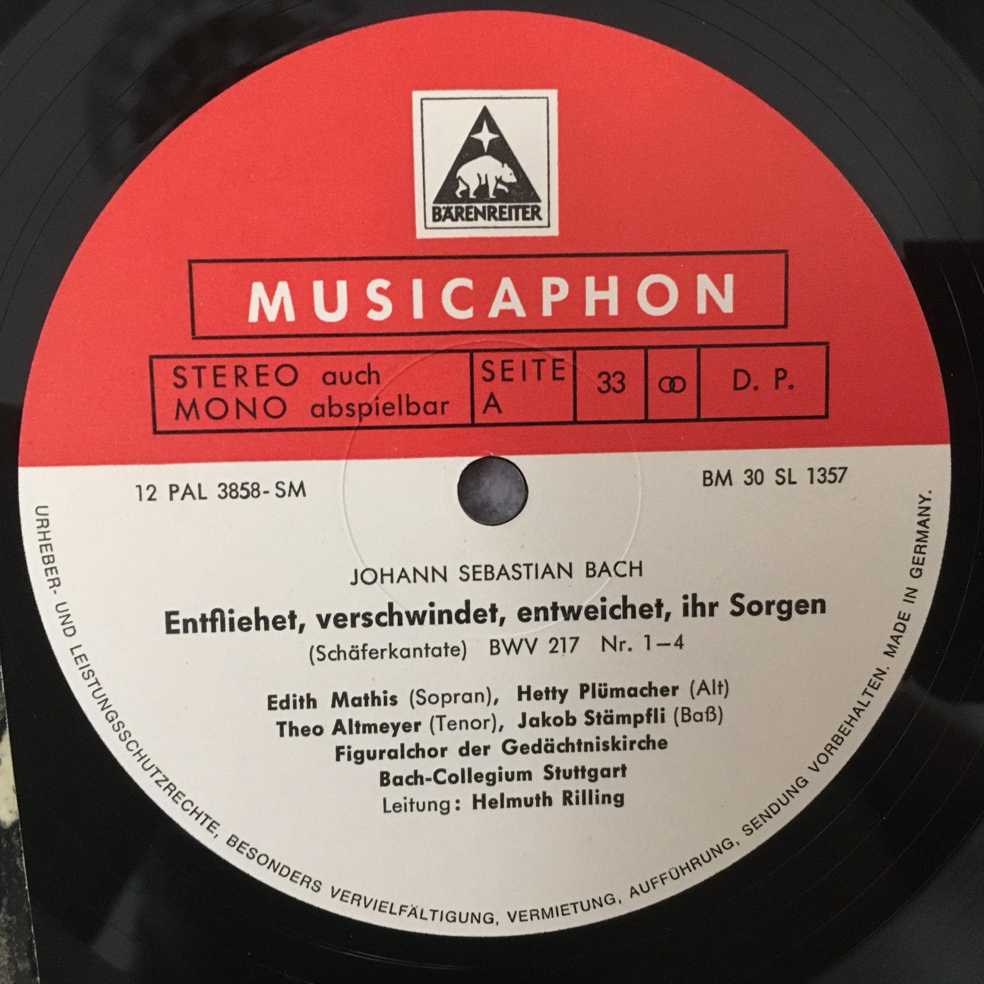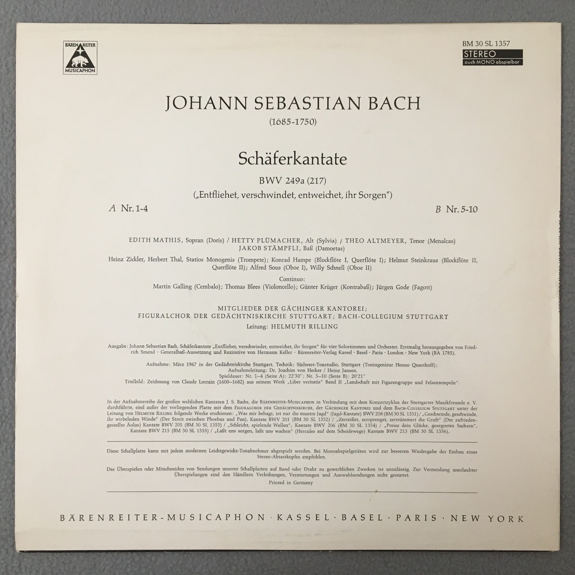 J665 Bach Cantata Mathis Altmeyer Rilling Musicaphon BM 30 SL 1357 Stereo