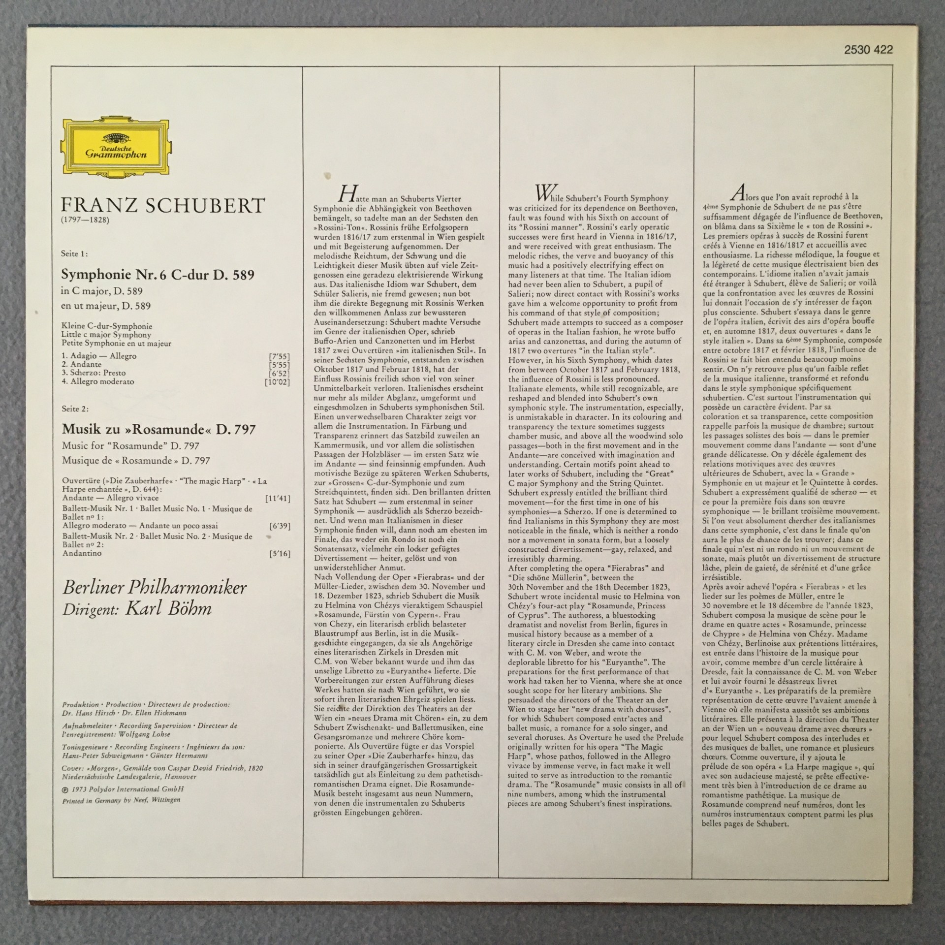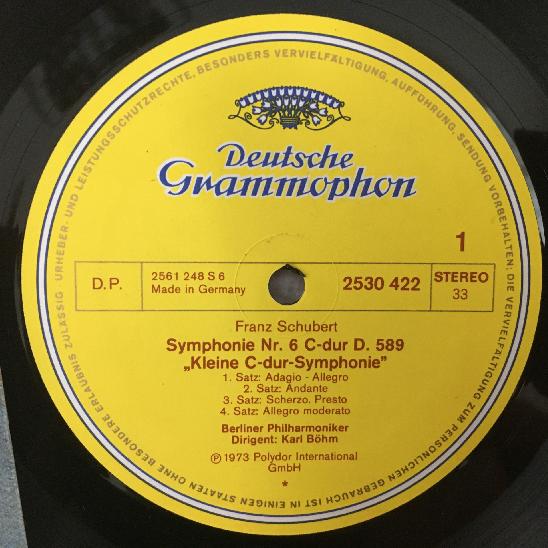 J666 Schubert Symphony No.6 Bohm BPO DGG 2530 422 Stereo