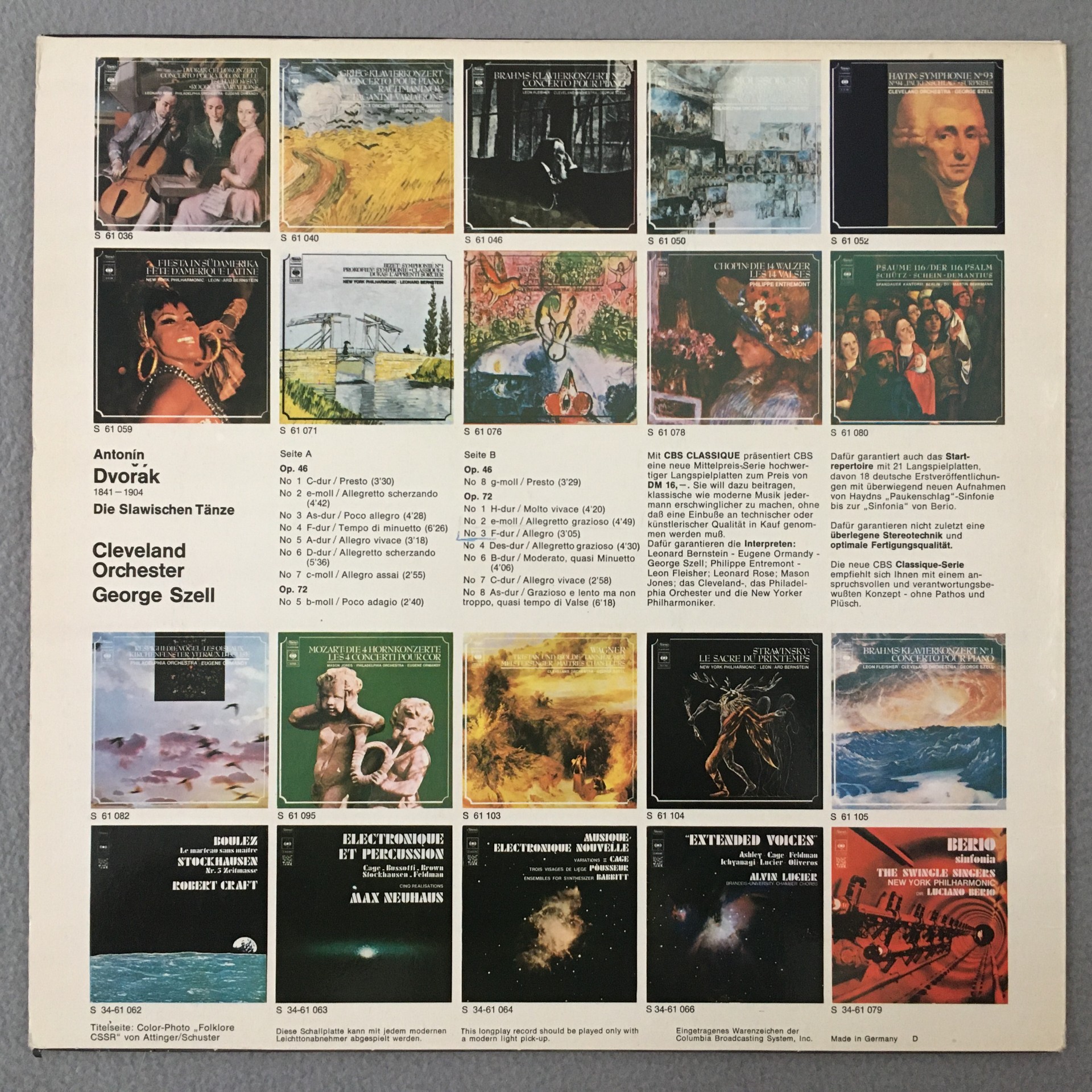 J667 Dvorak Slavonic Dances Szell CBS S 61 089 Stereo