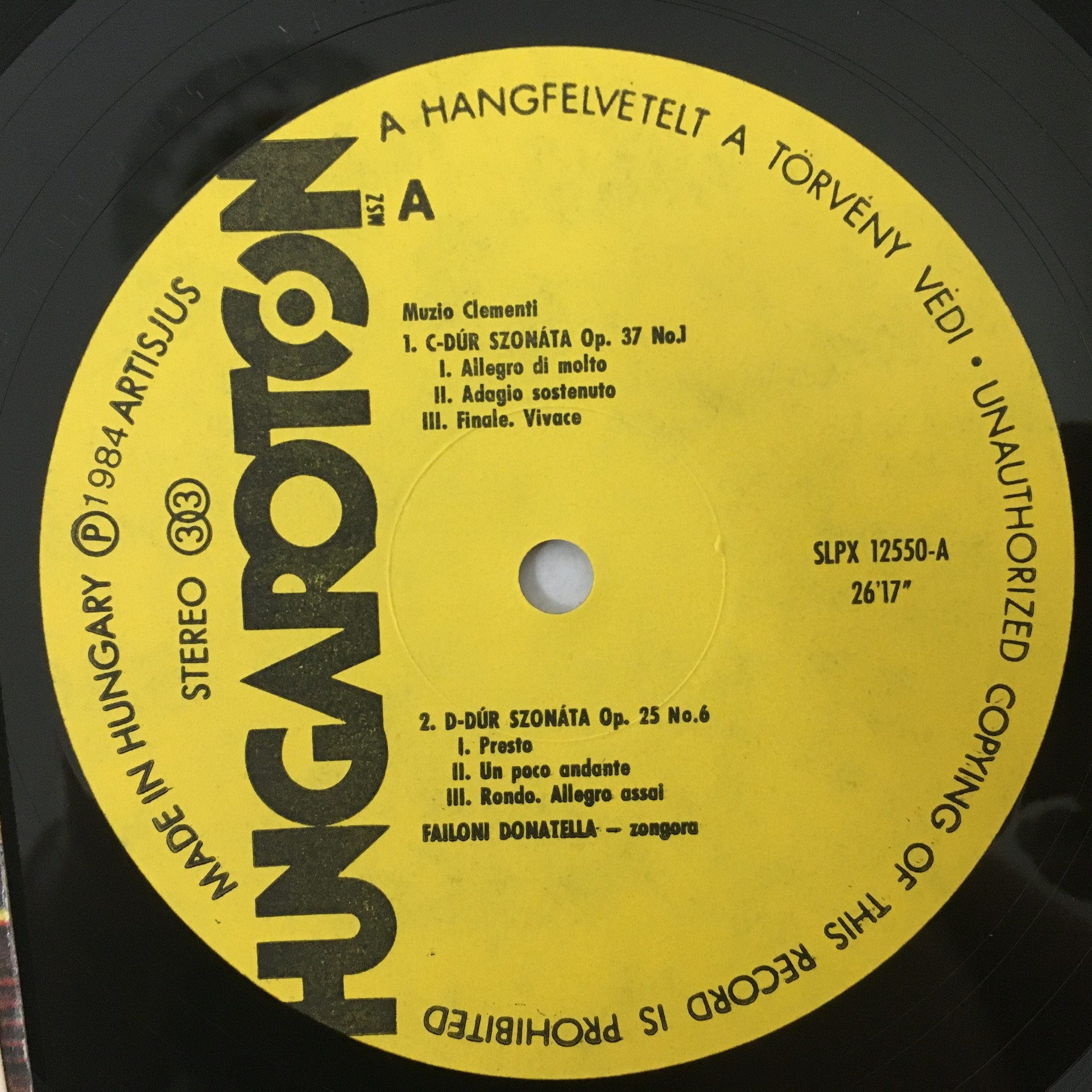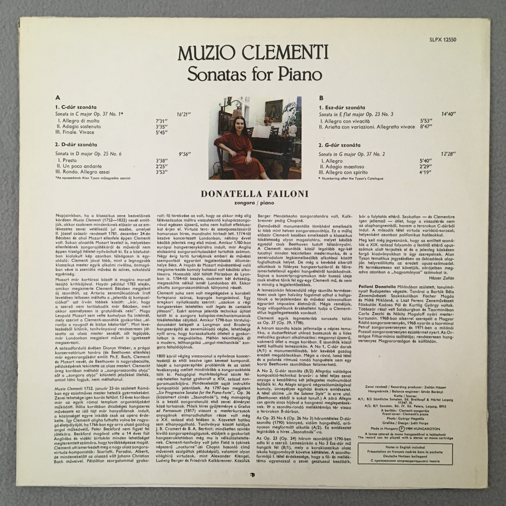 J674 Clementi Piano Sonatas Failoni Hungaroton SLPX 12550 Stereo