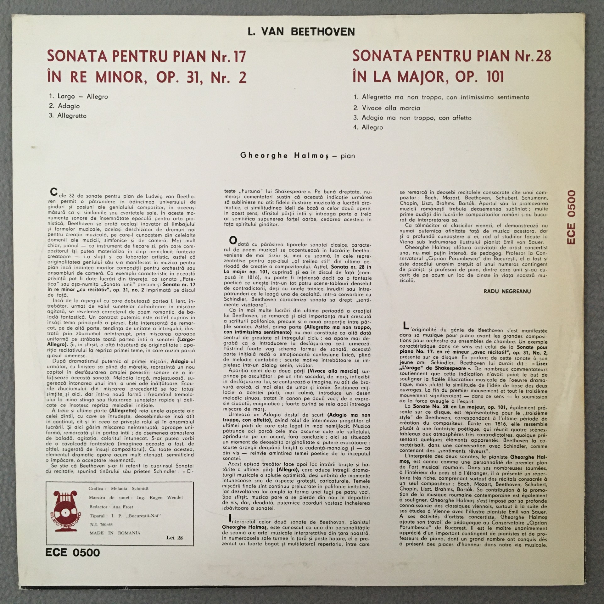 J677 Beethoven Sonatas Halmos Piano Electrecord ECE 0500