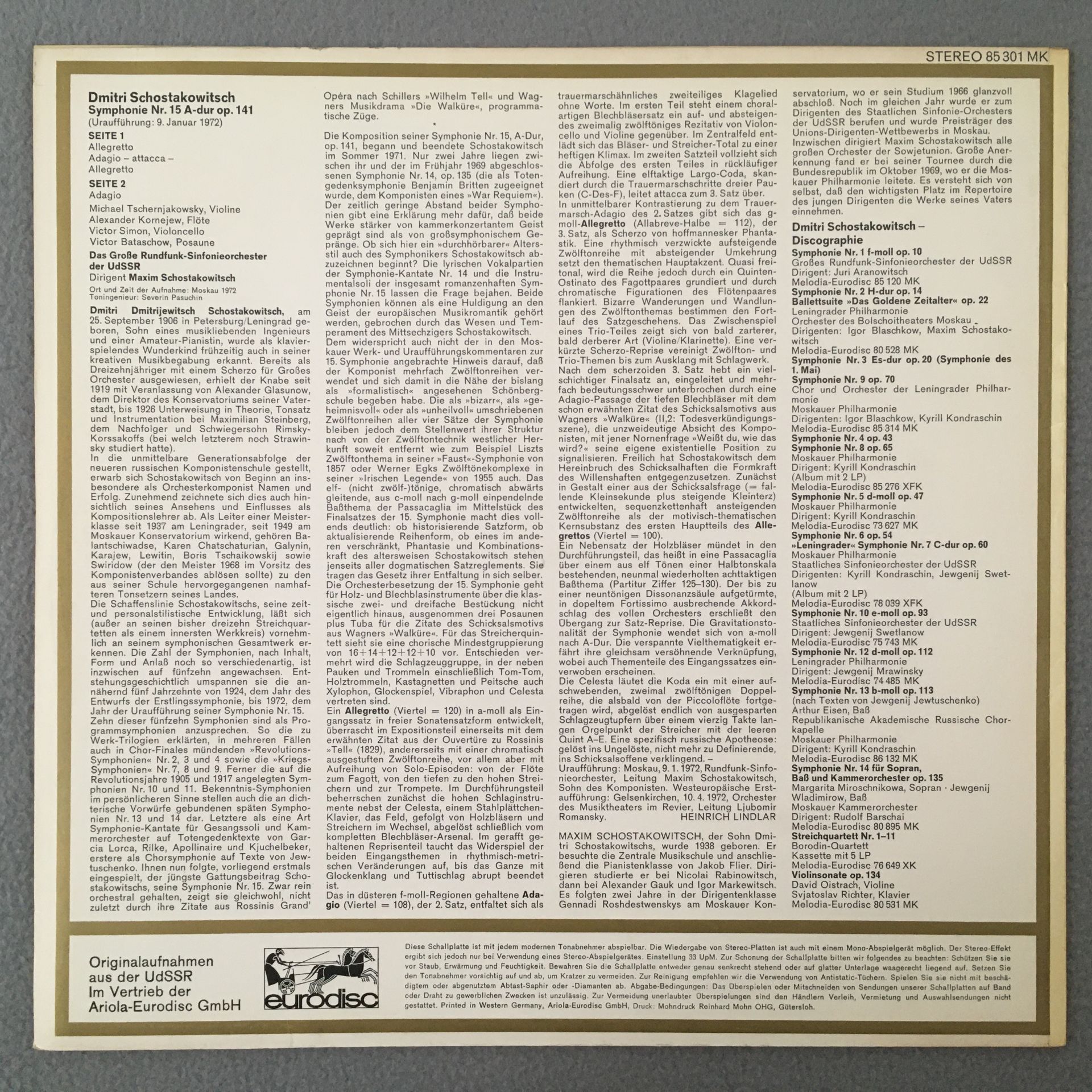 J679 Shostakovich Symphony No.15 Shostakovich Eurodisc 85 301 MK Stereo