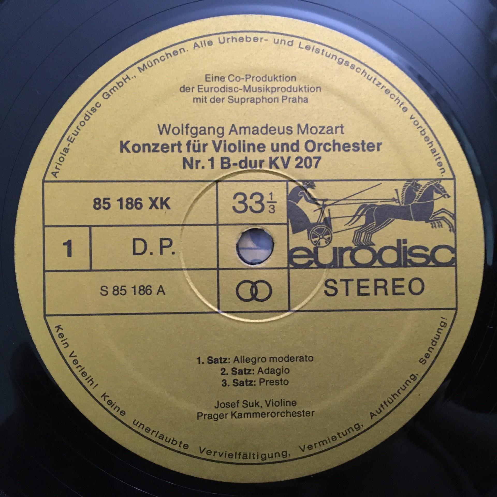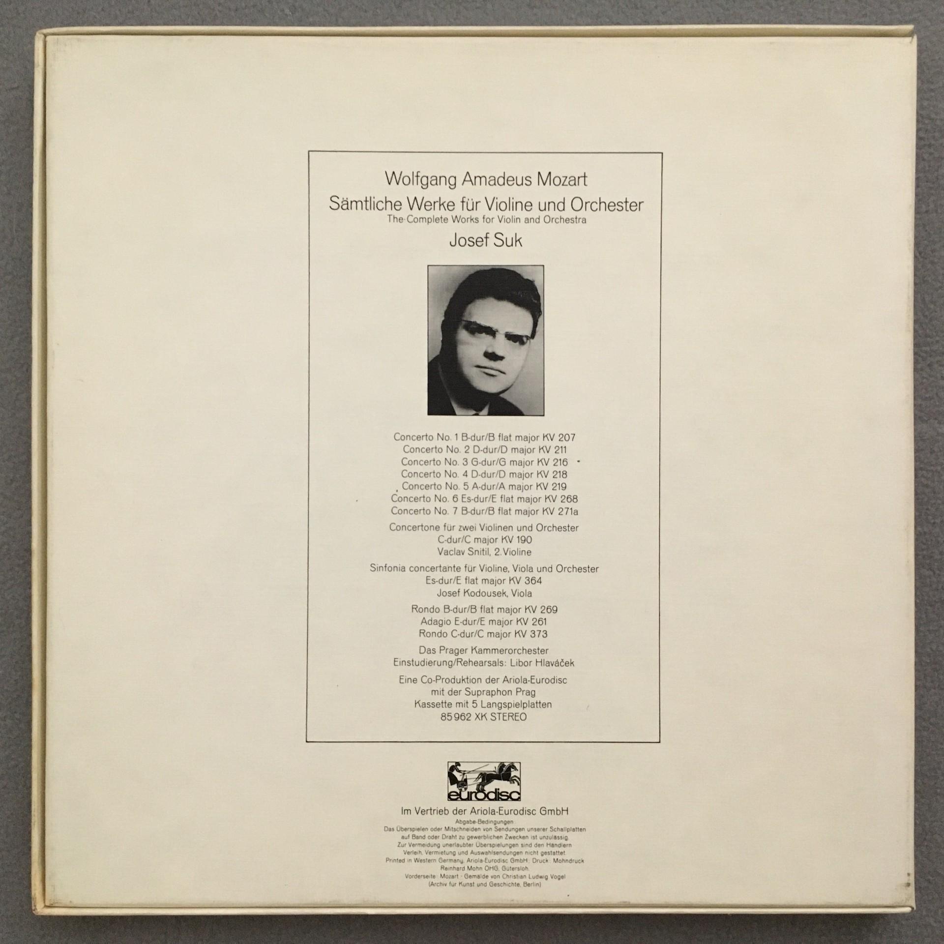 E416 Mozart Complete Violin Concertos Suk 5LP Eurodisc 85 962 XK Stereo