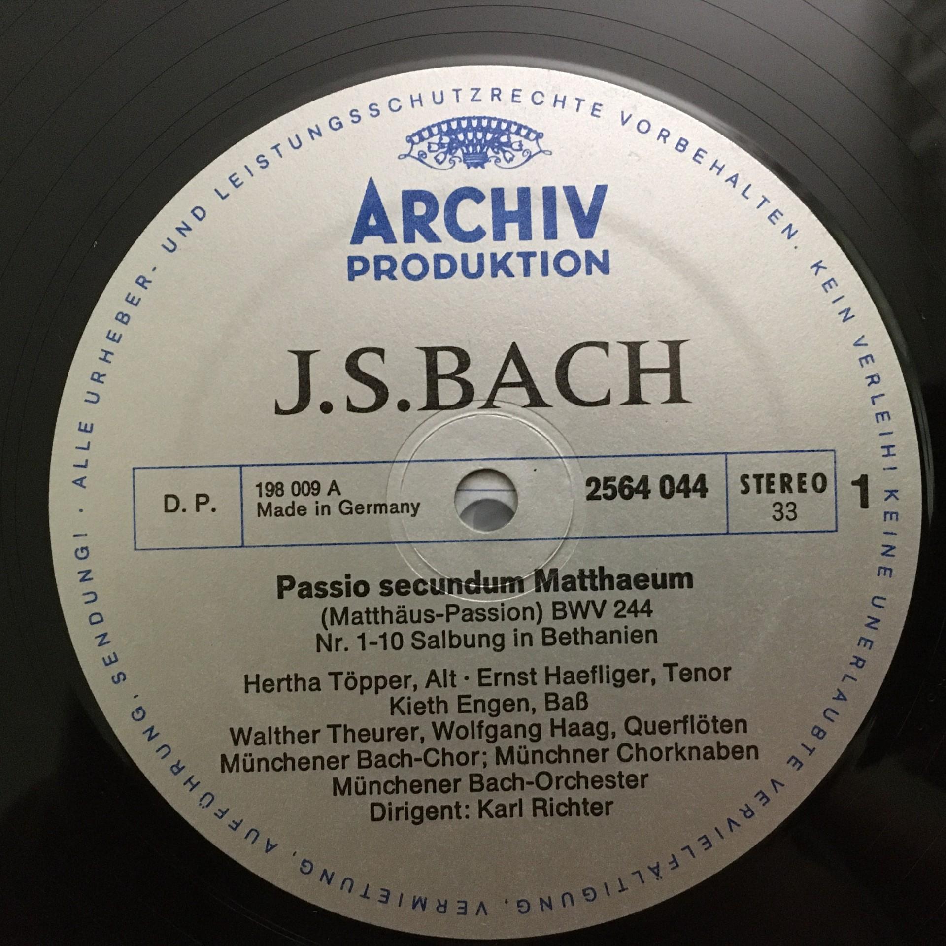 E417 Bach St. Matthew Passion St. John Seefried Richter 7LP DGG Archiv 2722 037