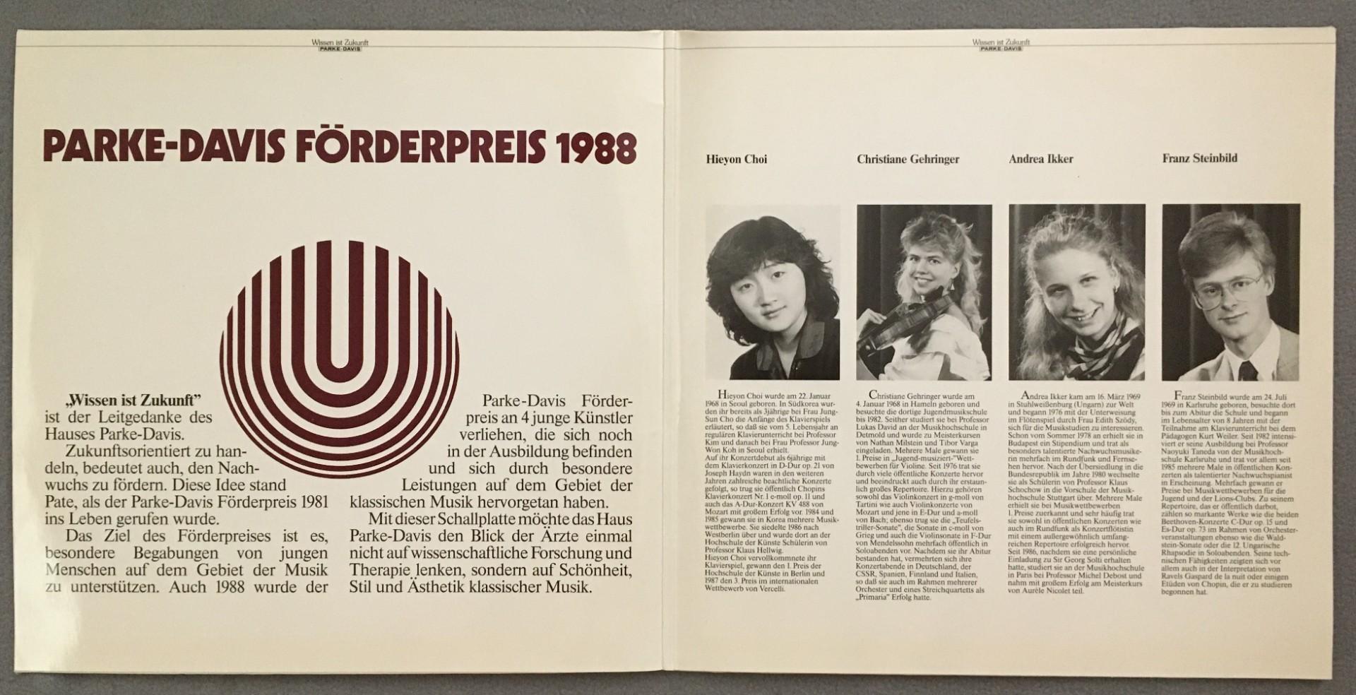 U001 Parke-Davis Förderpreis 1988 Steinbild Ikker Choi 2LP 66.28376 Stereo