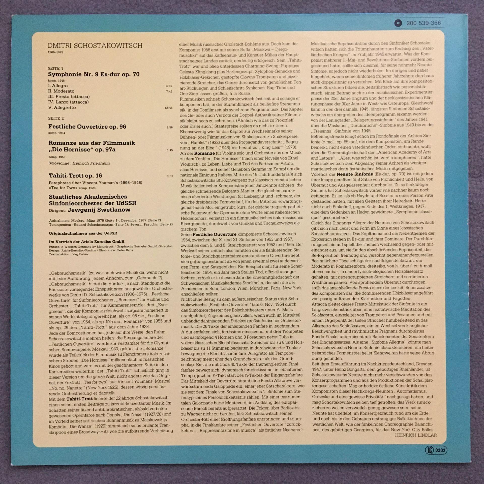 U008 Shostakovich Symphony No.9 Overture Svetlanov Eurodisc 200 539-366 Stereo