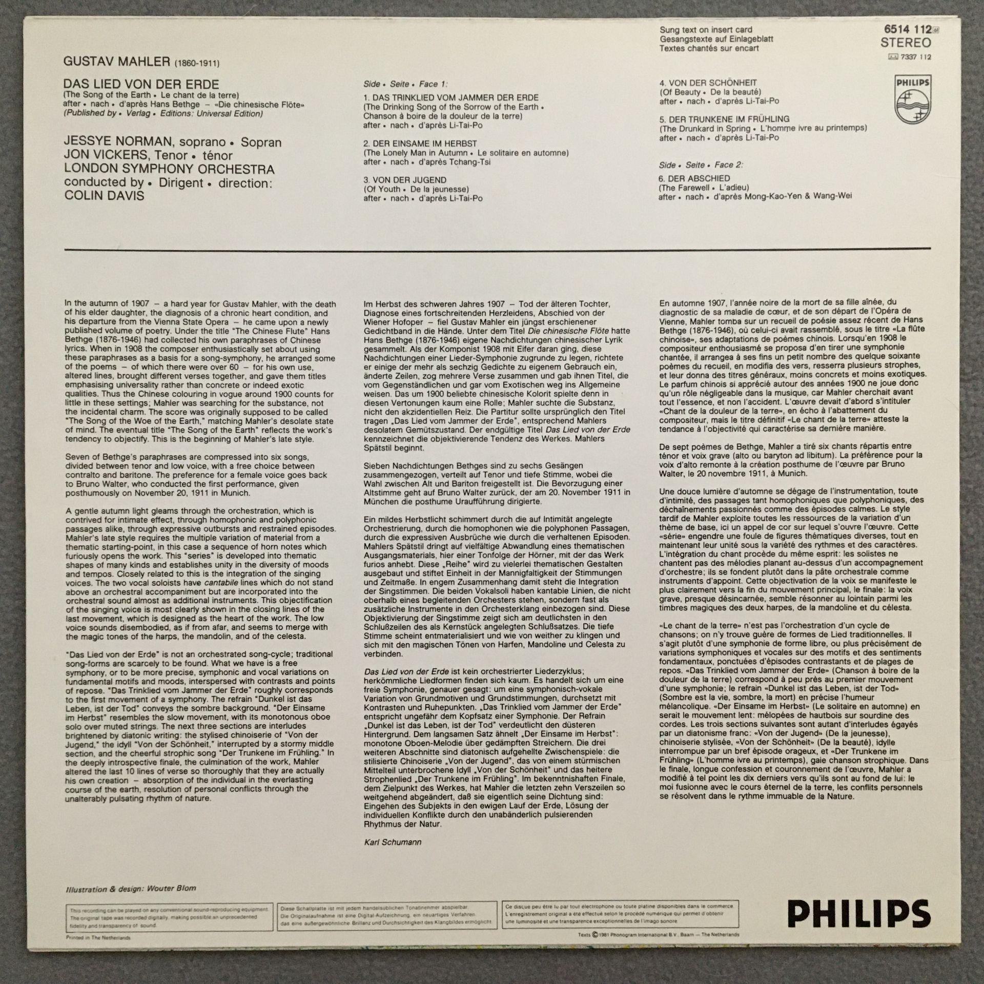 U009 Mahler Song of the Earth Norman Davis Philips 6514 112 Digital Stereo