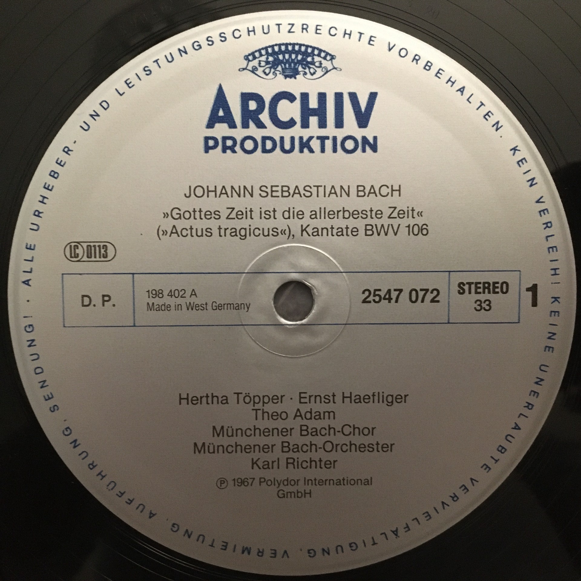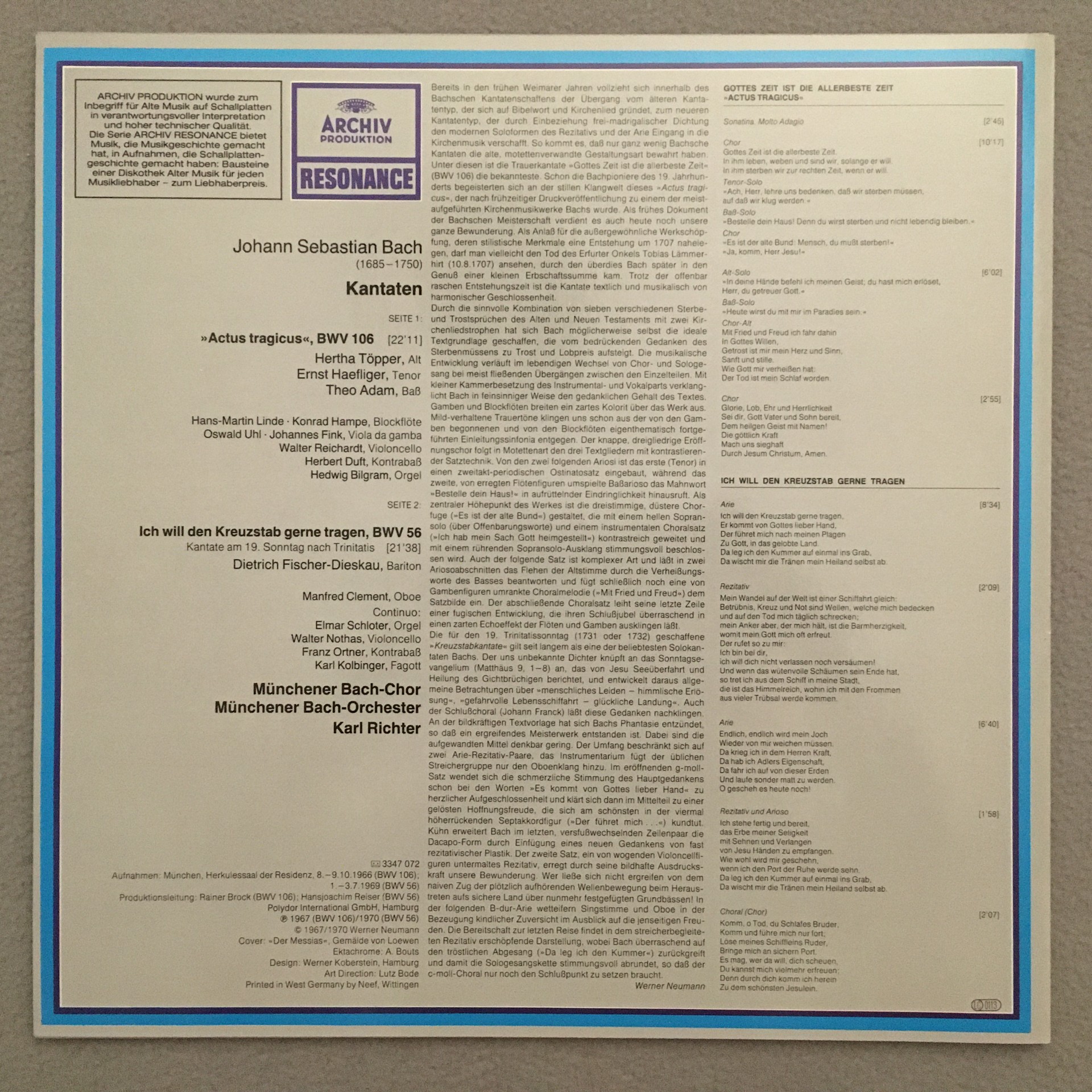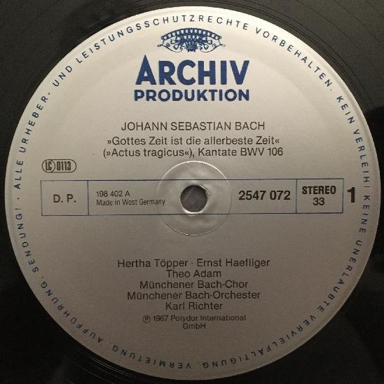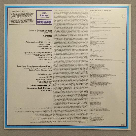 J687 Bach Cantatas Fischer-Dieskau Adam Richter Archiv DGG 2547 072 Stereo