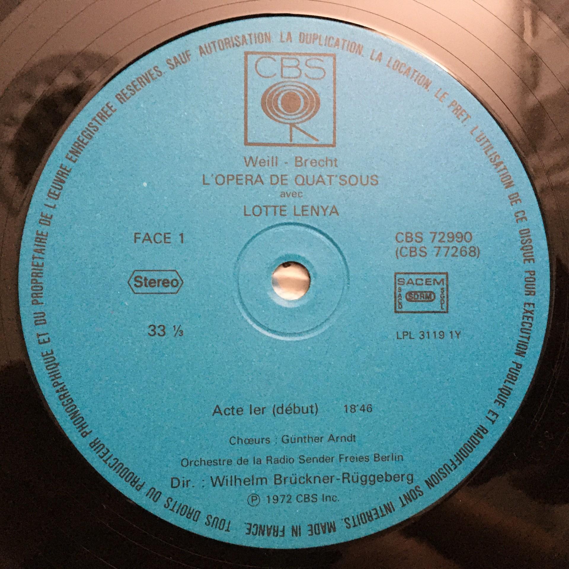 E155 Weill Brecht Dreigroschenoper Lenya Brückner-Rüggeberg 2LP CBS 77268 Stereo