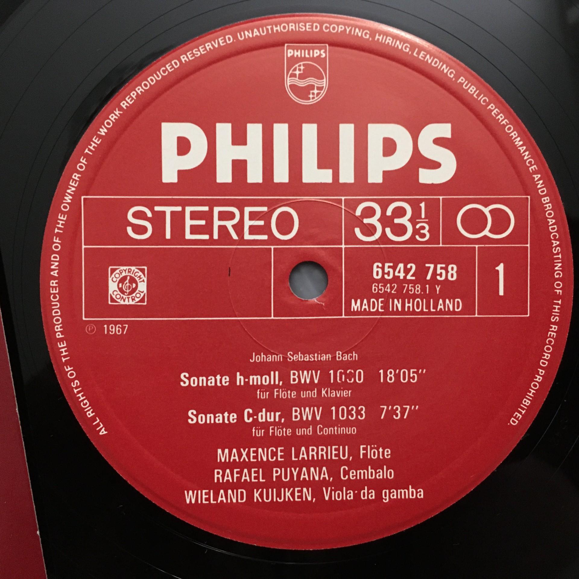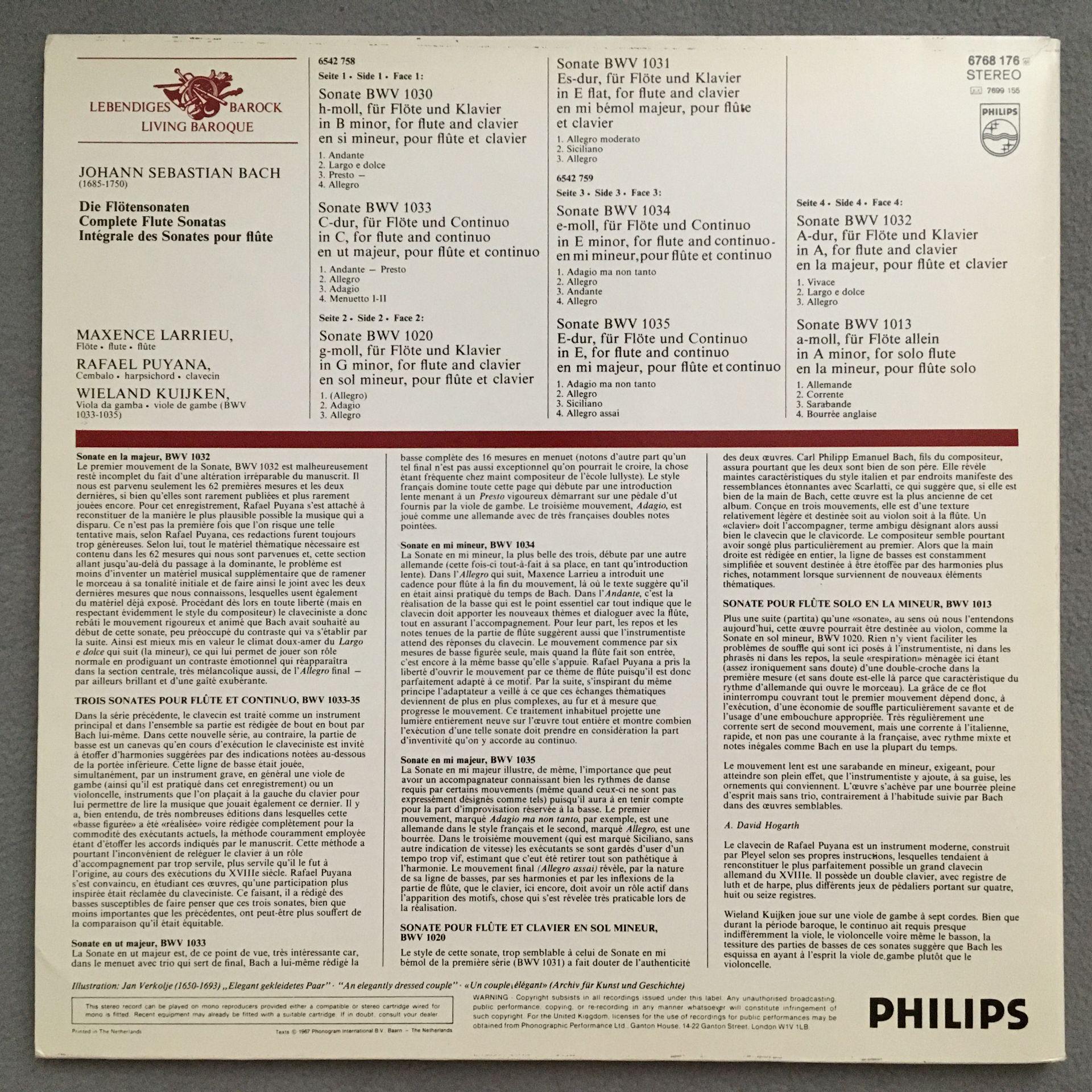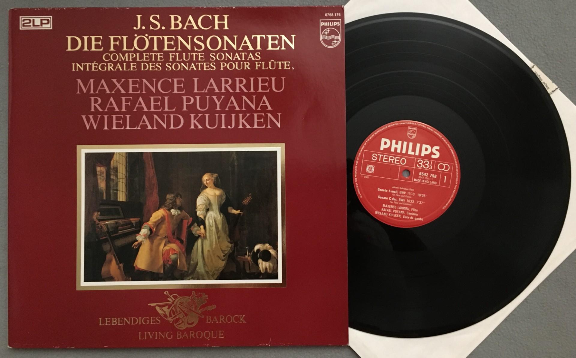 U018 Bach Flute Sonatas Larrieu Puyana Kuijken 2LP Philips 6768 176 Stereo