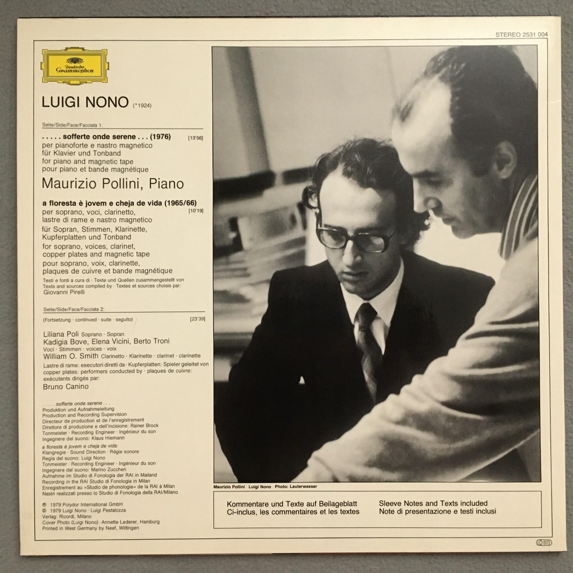 U022 Nono Sofferte onde serene Pollini Canino Piano DGG 2531 004 Stereo