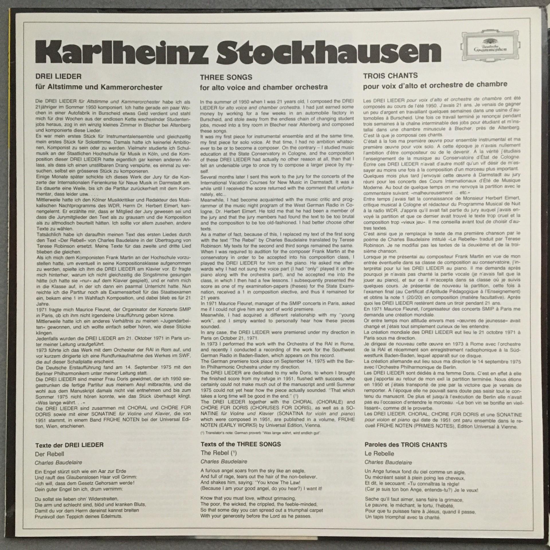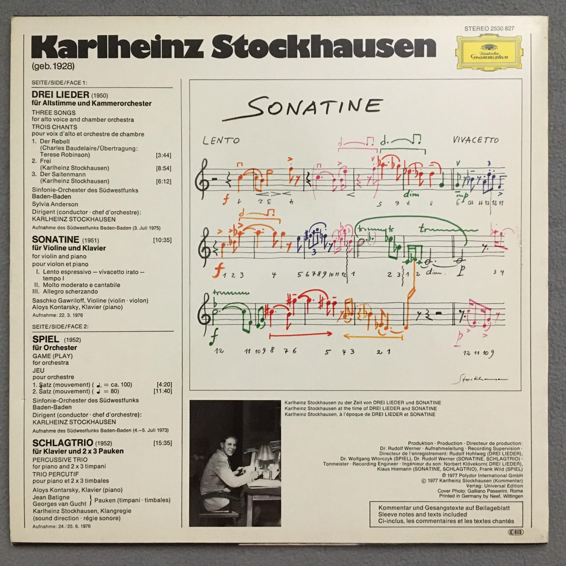 U027 Stockhausen 3 Songs Sonatine Gawriloff Kontarsky DGG 2530 827 Stereo
