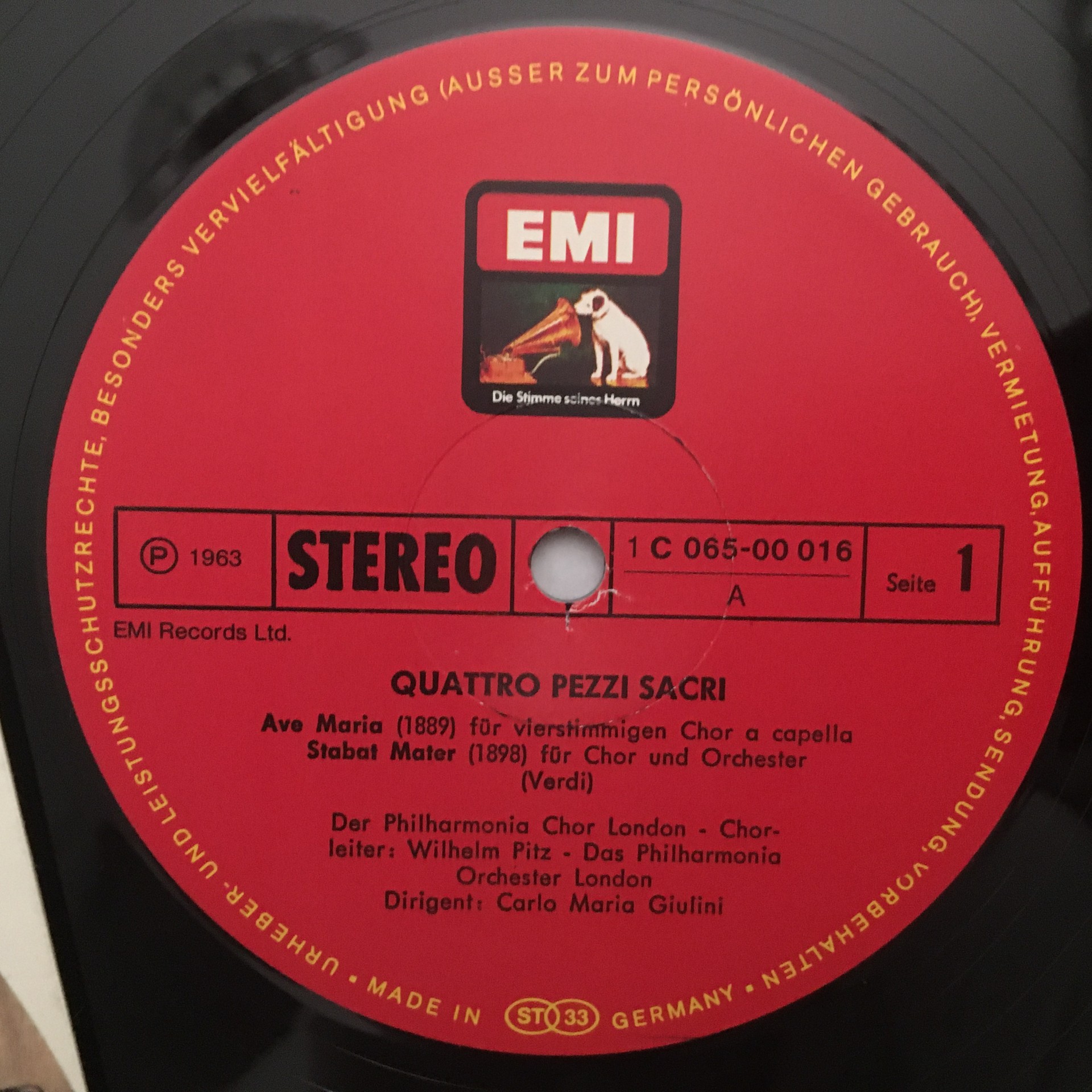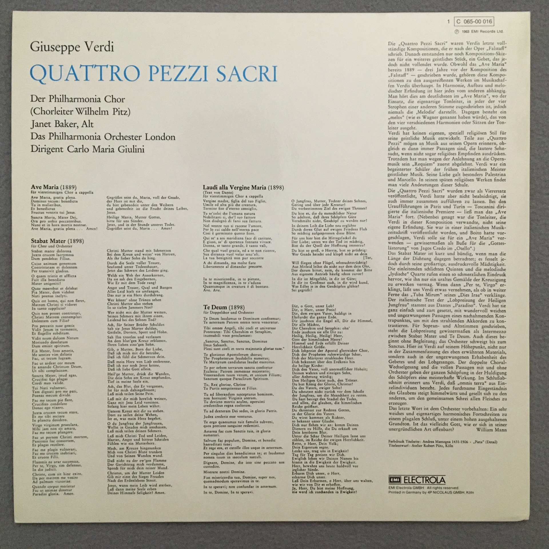 J693 Verdi 4 Sacral Pieces Baker Giulini LPO EMI 1 C 065-00 016 Stereo