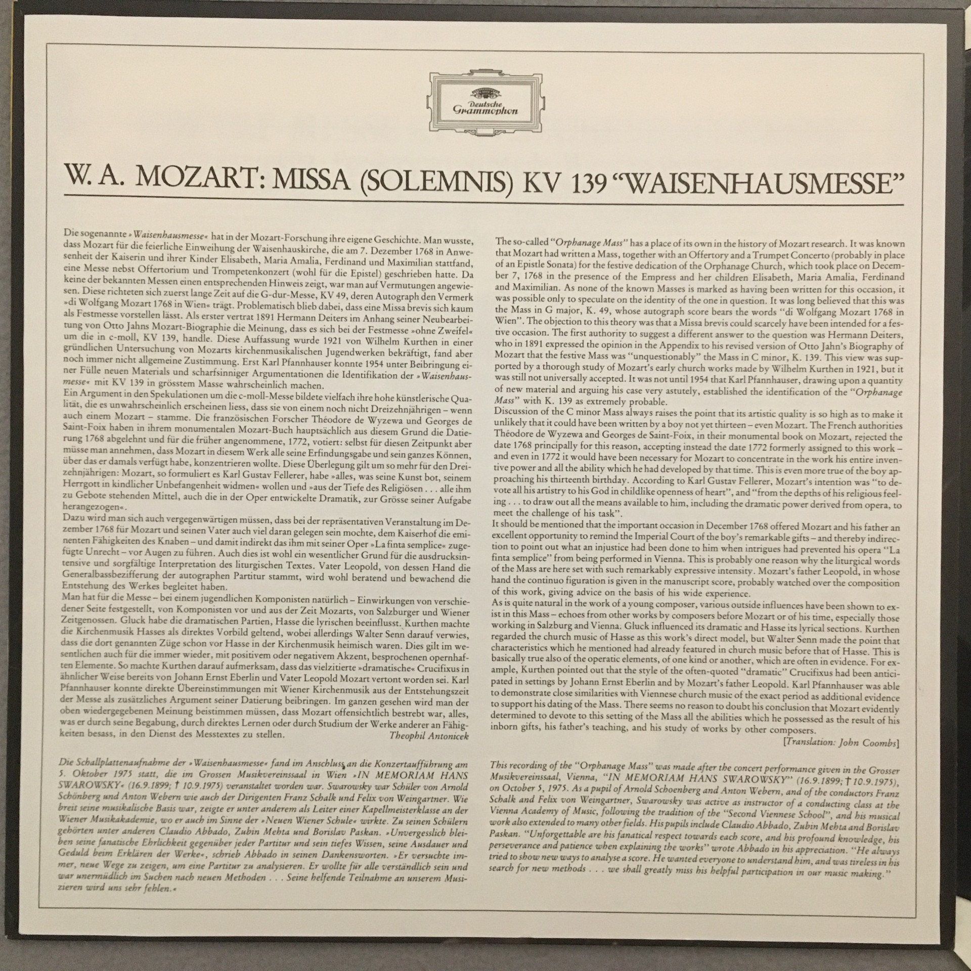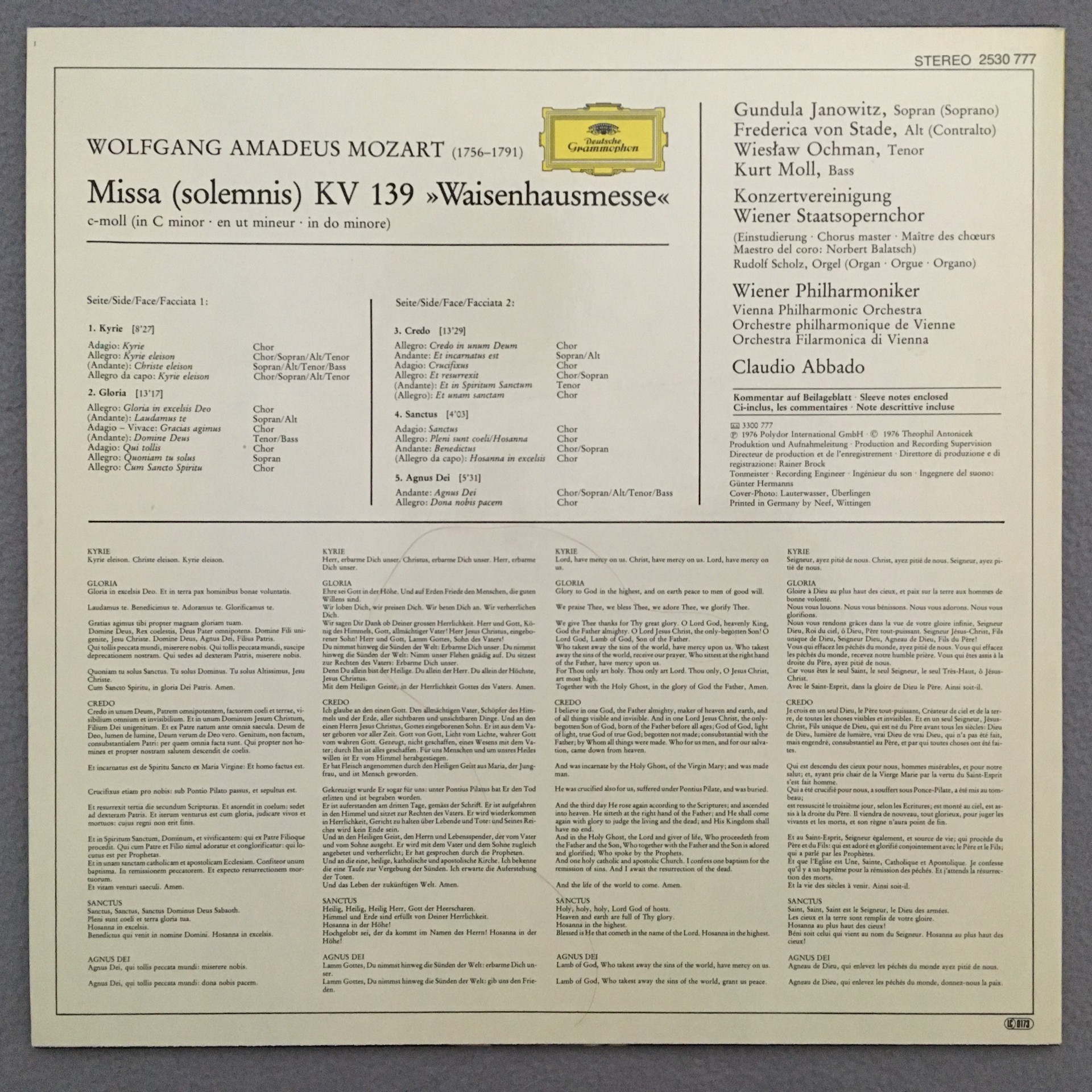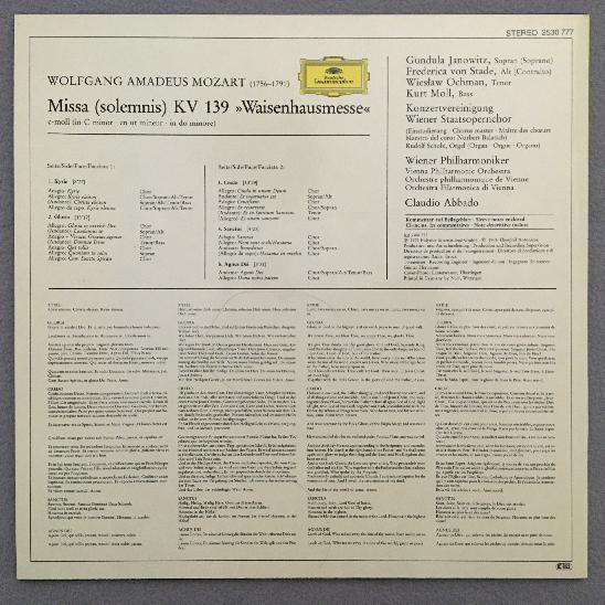 J696 Mozart Mass KV 139 Janowitz von Stade Abbado VPO DGG 2530 777 Stereo