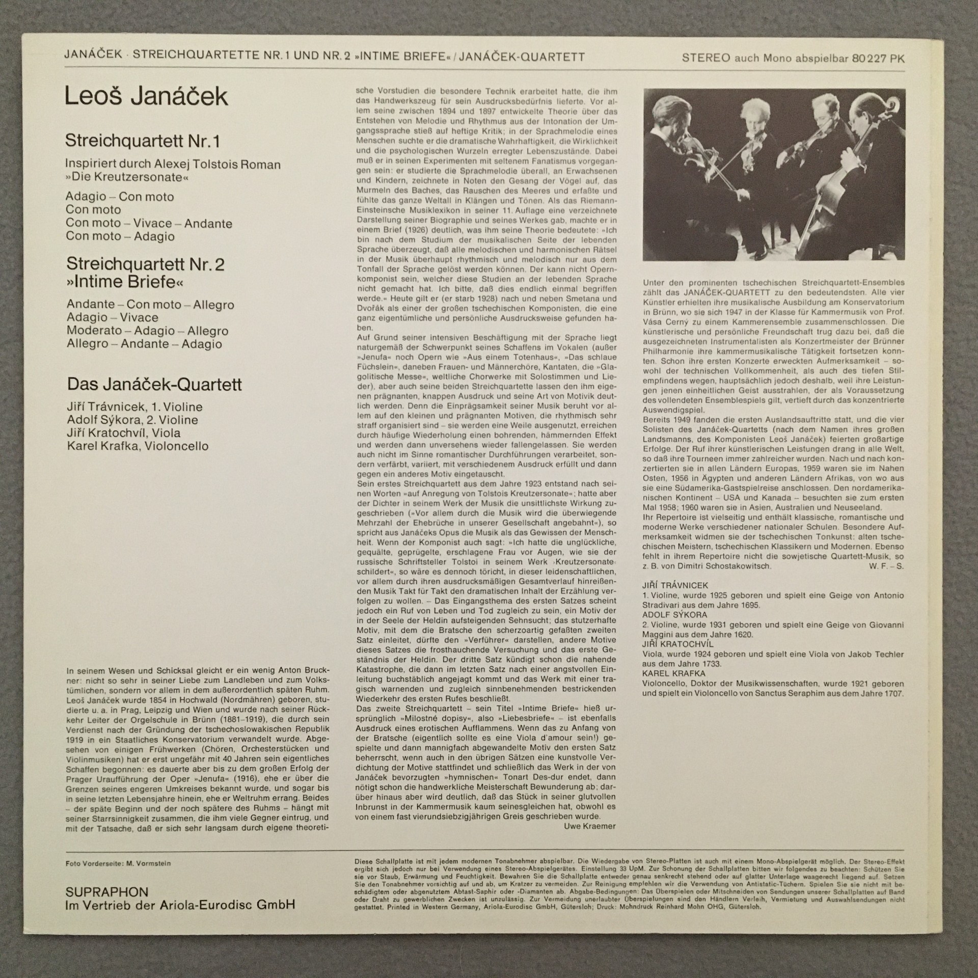 J700 Janacek String Quartets Janacek Quartet Supraphon 80 227 PK Stereo